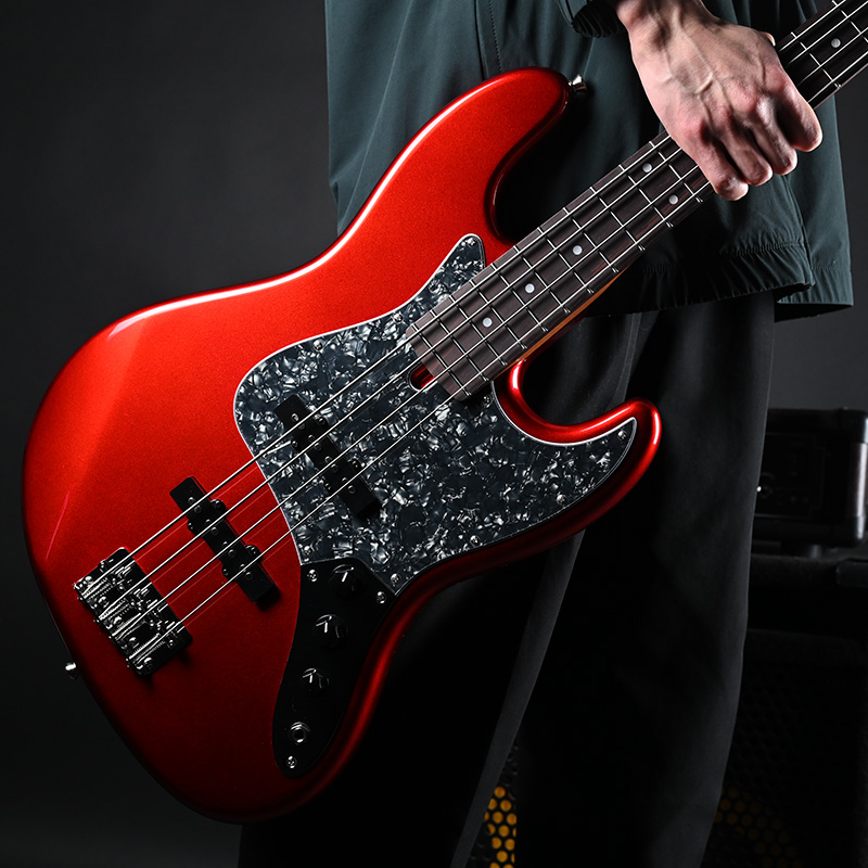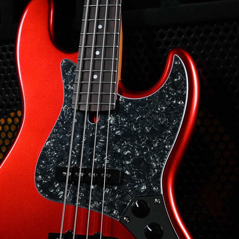 This CAR features a metallic finish. It pairs perfectly with the black pearl pickguard, where the contrast of red and black simultaneously creates a sense of high quality. The balance of colors produces a striking presence that makes it stand out on stage.