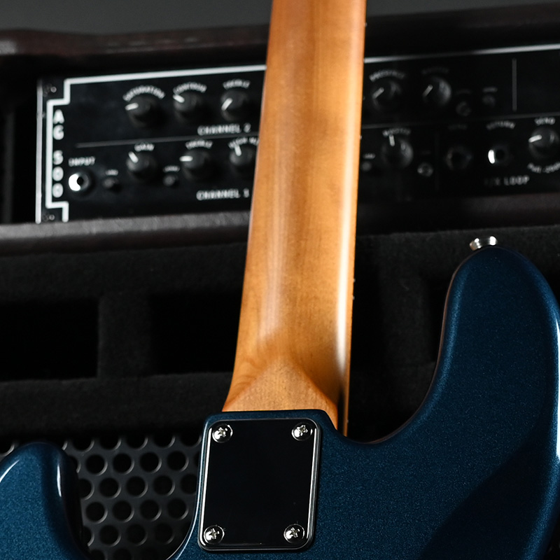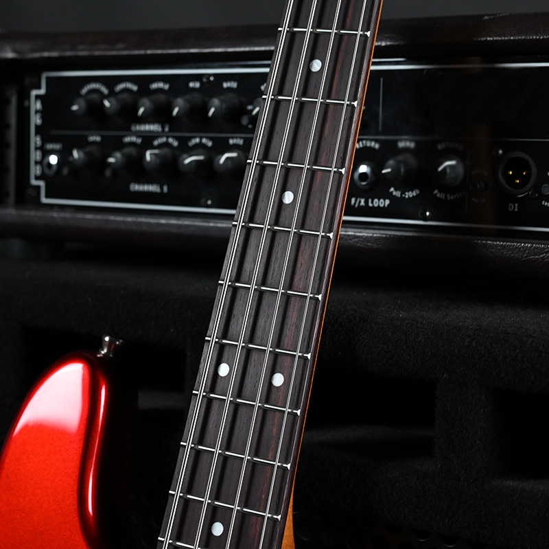 This model features a rosewood fingerboard and a roasted maple wood neck. Roasted maple is maple wood that has been heated at high temperatures to evaporate moisture and oils, creating a material that closely resembles aged wood. It is highly resistant to warping and twisting. When used for the neck, it not only provides stability but also delivers a rich, natural resonance and a vintage-like, well-seasoned tone.