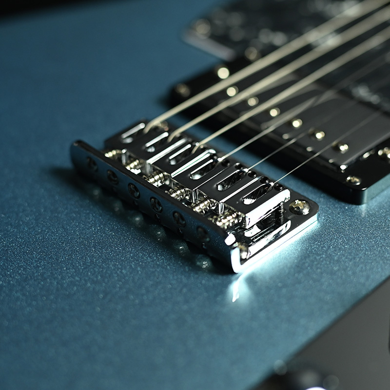 The Black Pearl Pickguard featured in this model exudes a sense of luxury and refined brilliance, evoking the interplay of black and white luster characteristic of black pearls. It harmonizes beautifully with the body color, accentuating the instrument’s hue while adding a distinct presence.