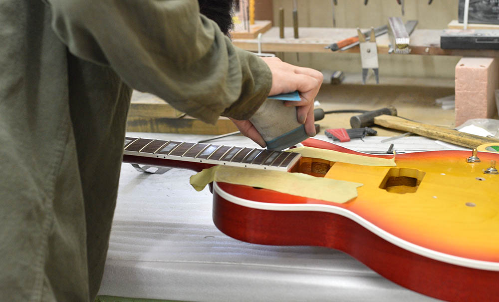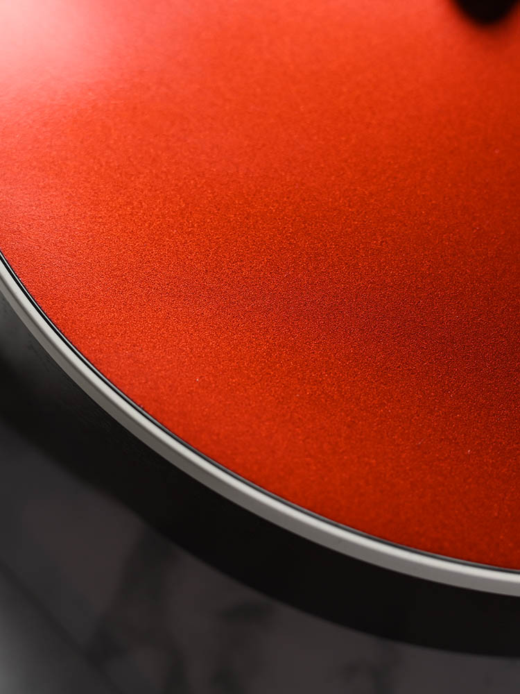 アーチには強いこだわりが込められており、しっかりとくびれたカーブラインと、ボディバインディングへと繋がる外周部の繊細な削り込みが、ギターの顔ともいえるボディトップに立体感とメリハリを生み出します。