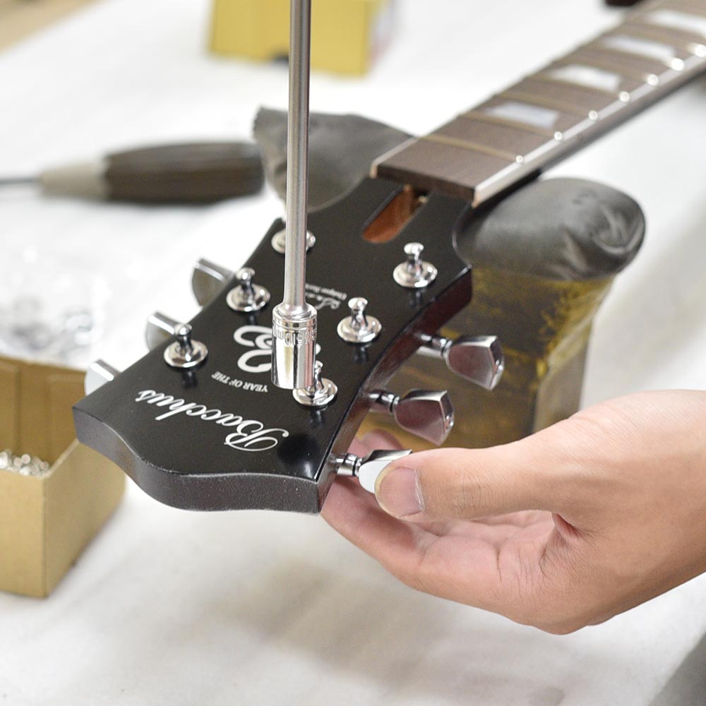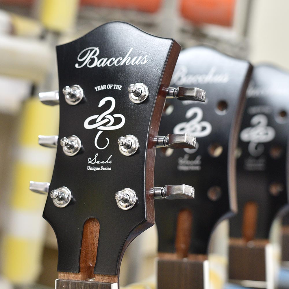 ピックアップにはアルニコ5マグネットを使用した「Bacchus BSH-1」を採用。このピックアップはフロントとリアでコイルのエナメル線を変更しており、各ピックアップポジションで最適なサウンドになるよう調整が施されております。