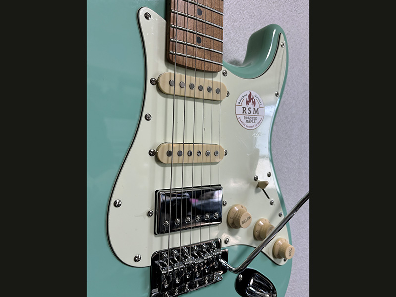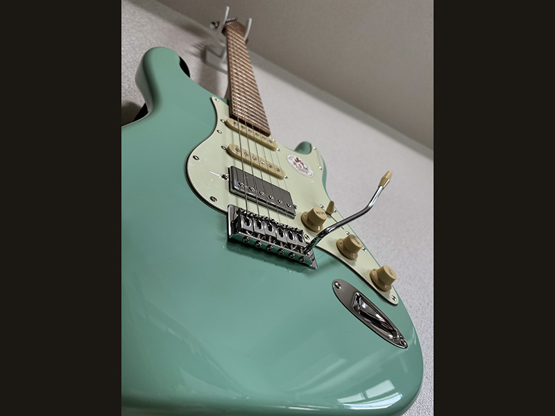 BacchusのBST-2-RSM/M SFG、ついに手に入れました! F社直系のクラシックなSTシェイプに、憧れだったSurf Green! 小売価格で2万円台とは思えないローステッドメイプルネックとSSH+コイルタップ、トレモロまで載っていて、クリーンから歪みまでこの1本で完結します。