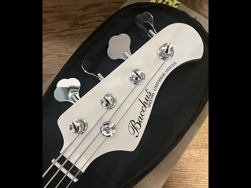 松本市に移住してDeviserさんのショールームで出逢いました。雪降る季節にこの白銀PBタイプを入手! マッチングヘッドにパープルハートをエボニーの様に塗った真っ黒な指板と、グリップはローステッドメイプルの濃い色味、ステンレスフレット、そして低価格と素晴らしい一本だと思ってます♪♪♪