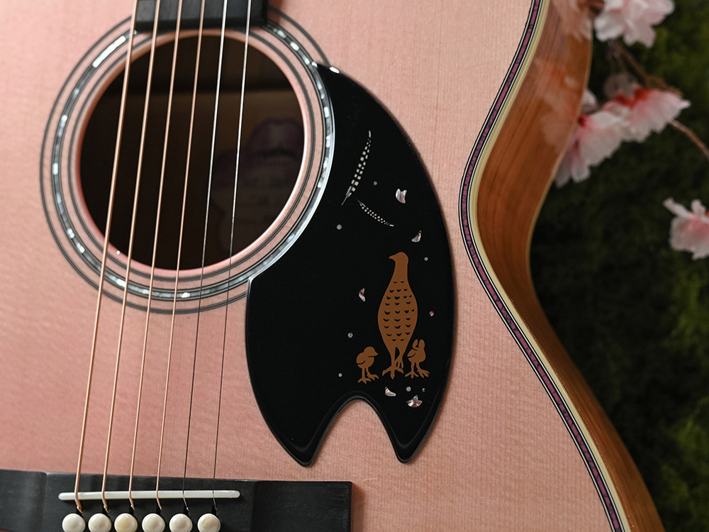 「日本のメーカーだからこそ作れるギターづくり」は、桜モデルを筆頭に、日本国産材である“和材”を世界へ発信する私たちにとって大切なテーマです。その想いの延長として、日本固有種である「ニホンキジ」をデザインに取り入れることも、私たちにとって必然ともいえる取り組みとなりました。