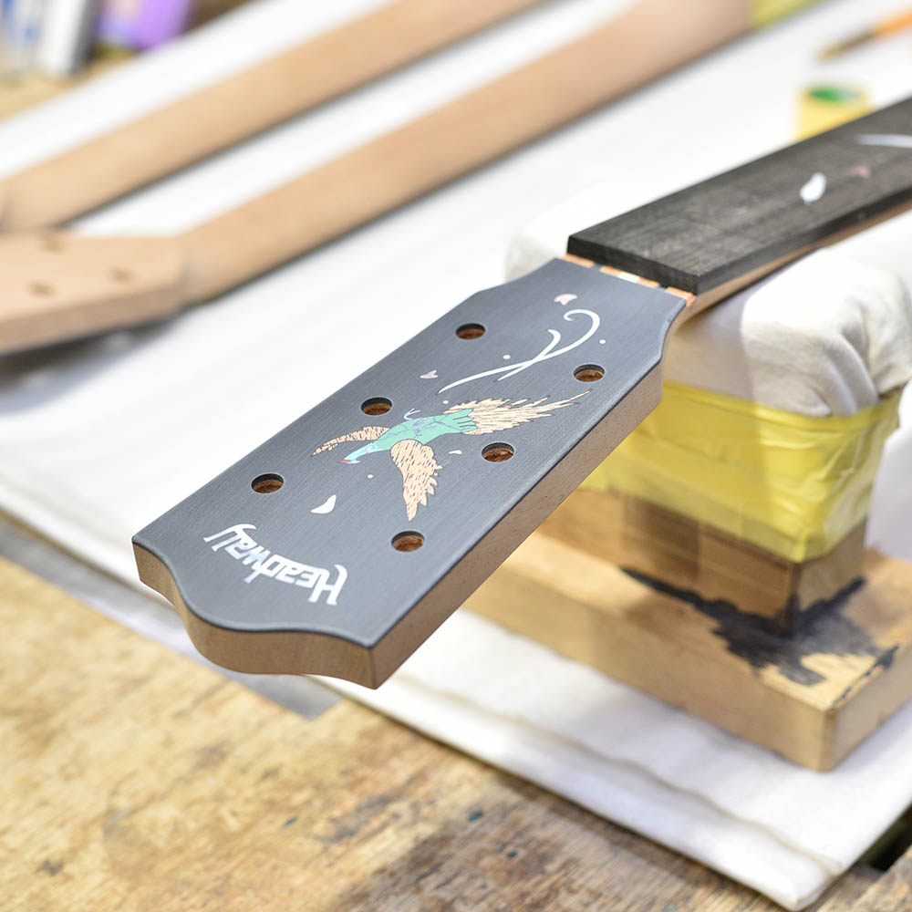 Headway史上最も薄い設定で握りやすい形状のエクストラスリムUネックを採用しました。ただ薄くしただけでなく、ネック内部にカーボンサポートの補強を入れることによりHeadway従来の特徴である堅牢さ、安定性も保持しています。女性や手の小さいプレイヤーにも試して頂きたい自信のネックグリップです。 少し使い馴染んだ後のネックのような半艶仕上げを施すことにより、適度に手がネックに吸い付く程よいグリップ感を実現しました。また、カーボンサポートにより、剛性が高まりレスポンスの良さに繋がっております。