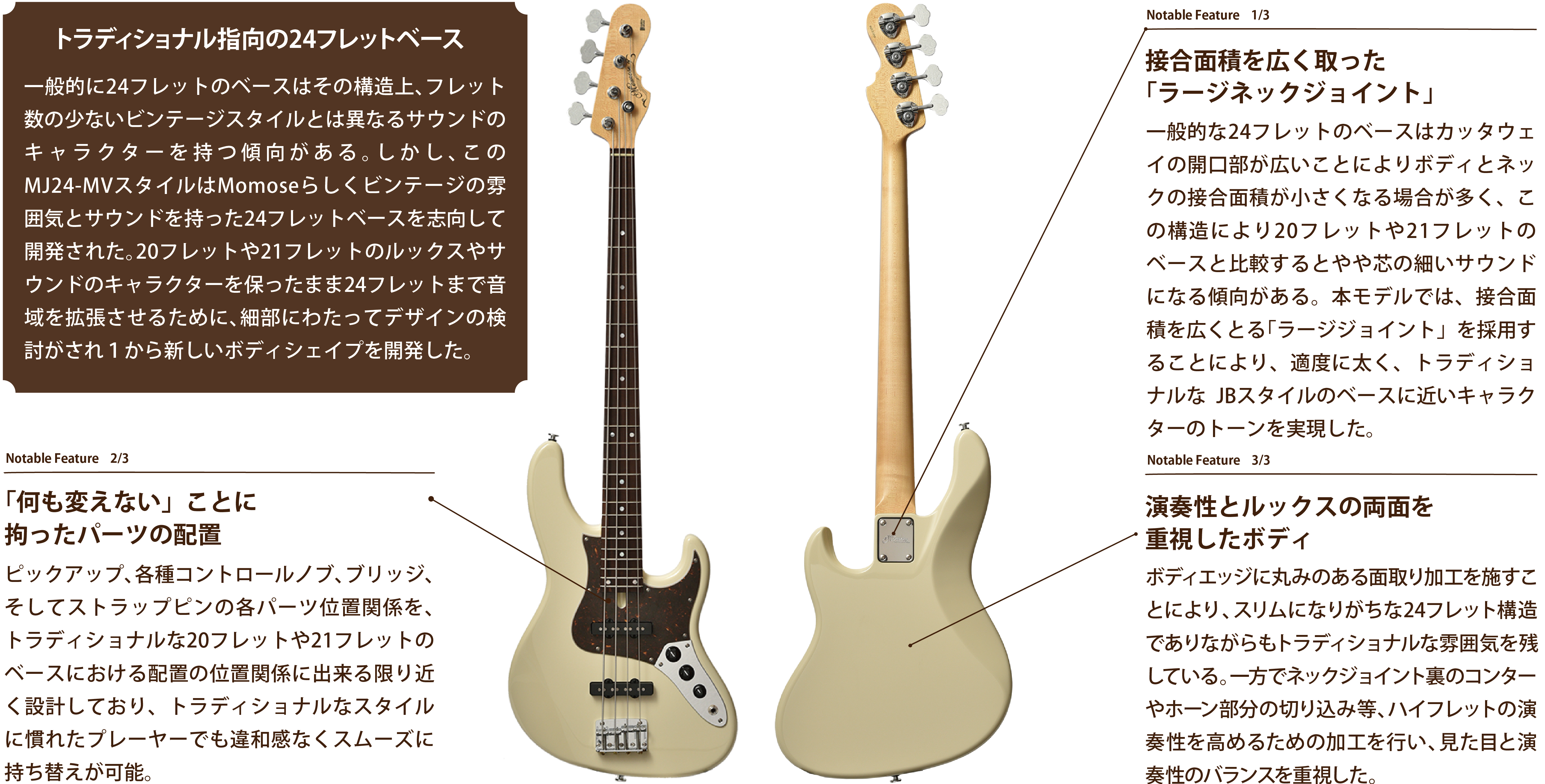 Virtuoso series」ではMomoseがこれまでに築き上げた高精度の造りと伝統的なエレキギターの設計への敬意を引き継ぎながらも、職人達の長年の経験から生まれたアイディアやミュージシャン達からの要望を取り入れた仕様を盛り込み、より独自性に富んだ発展を遂げました。全ての演奏家が名手と成り得る現代の音楽シーンにフィットするエレキギター・エレキベースを展開します。