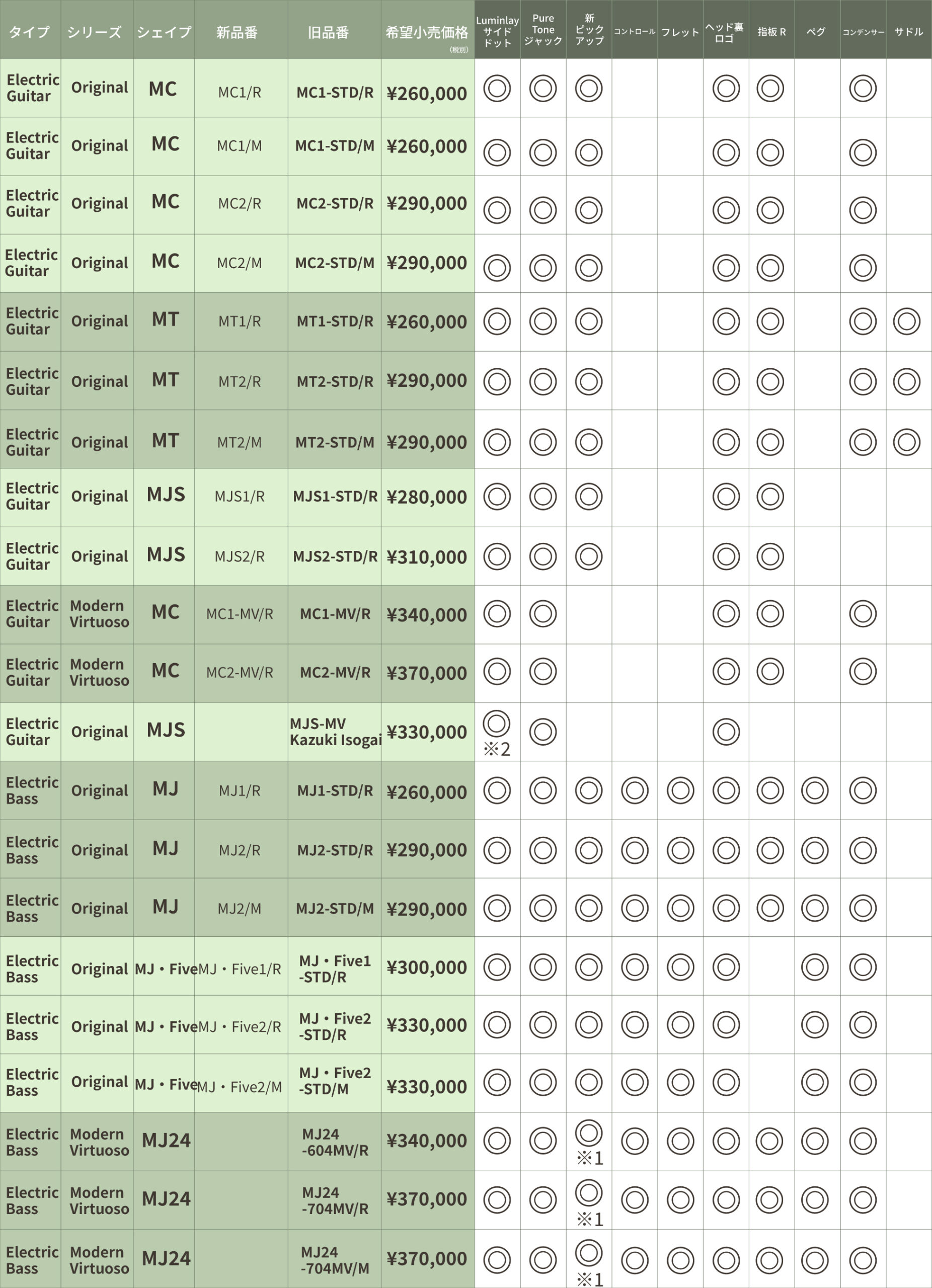 対応モデル: MC, MT, MJS, MJ(4弦), MJ24(4弦),