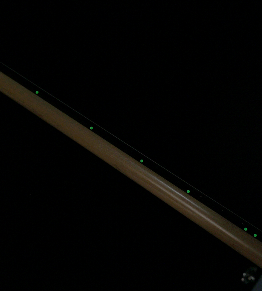 光を溜めこんで暗闇で放出する畜光素材ルミンレイ(Luminlay)のサイド・ポジションマークを全機種に採用。暗転など、光量の低い照明演出が行われるライブハウスやコンサートホールのステージにおいて重宝され、プロミュージシャンからの支持率も高い仕様です。暗闇の中で手元を見失うリスクを低減します。