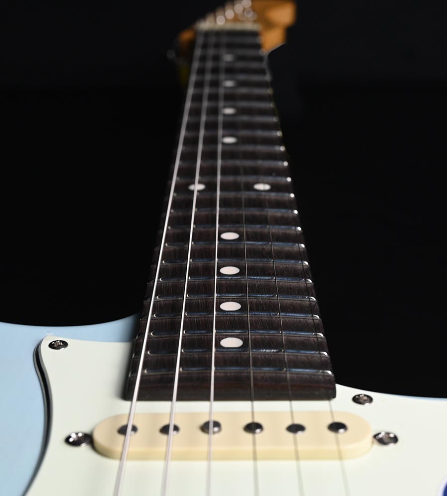 指板R(ラディアス)が丸みのある210R から、よりフラットに近い310Rに変更。これによって今まで以上に弦高を低く設定することが可能になり、速い押弦が必要なテクニカルなプレイにも挑戦しやすくなりました。