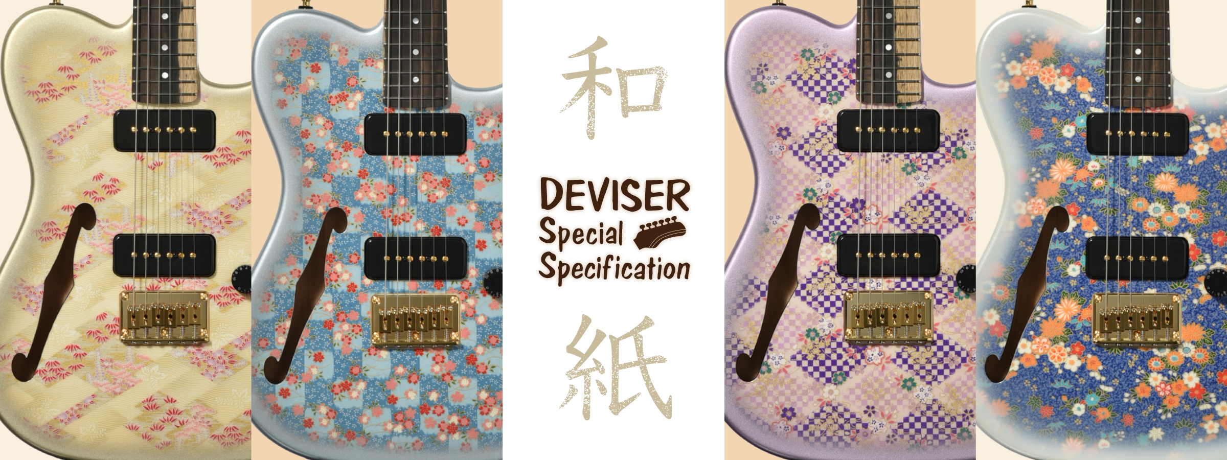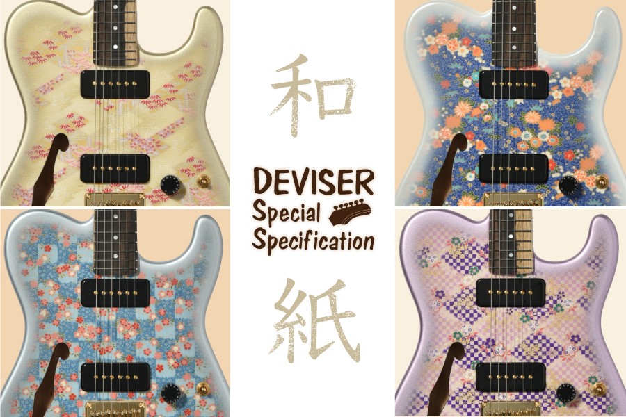 自然を模した色鮮やかな柄が心を躍らせる4種類の和紙をボディトップに貼り合わせたDeviser Rosetteeモデル。それぞれの和紙の柄に合わせたバースト・フィニッシュを施しています。ボディは定番のアルダーをバックに、人気の和材、栃をトップに採用。やや中音域に張りのあるトーンが加わり、弾き手のニュアンスを余すところなく表現します。
