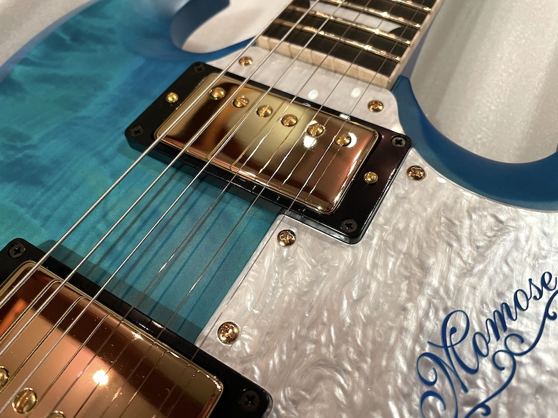 そのため、全て1本もののPremium Collectionやmomose EWC (エキゾチックウッドコレクション)なども必然的に”青”のモデルが非常に多くなっております。また、レギュラーラインナップには存在しないセットネックモデルでも製作をしております。