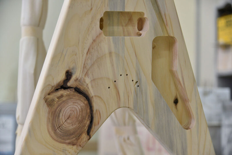 長野県で広がるマツクイムシによるアカマツの立ち枯れ被害。その実態の認知を皆さまに知ってもらうこと、そして利用価値の低いマツクイムシ被害で伐採しなければならなくなった木材の再利用として取り組んでいるアカマツギタープロジェクトからは、アカマツ特有の杢目とあえてそのまま生かしている虫食いあとや節などと相性の良い「アンティークブラック」で仕上げたホロウモデル2種類が登場!