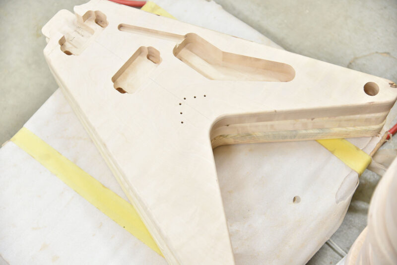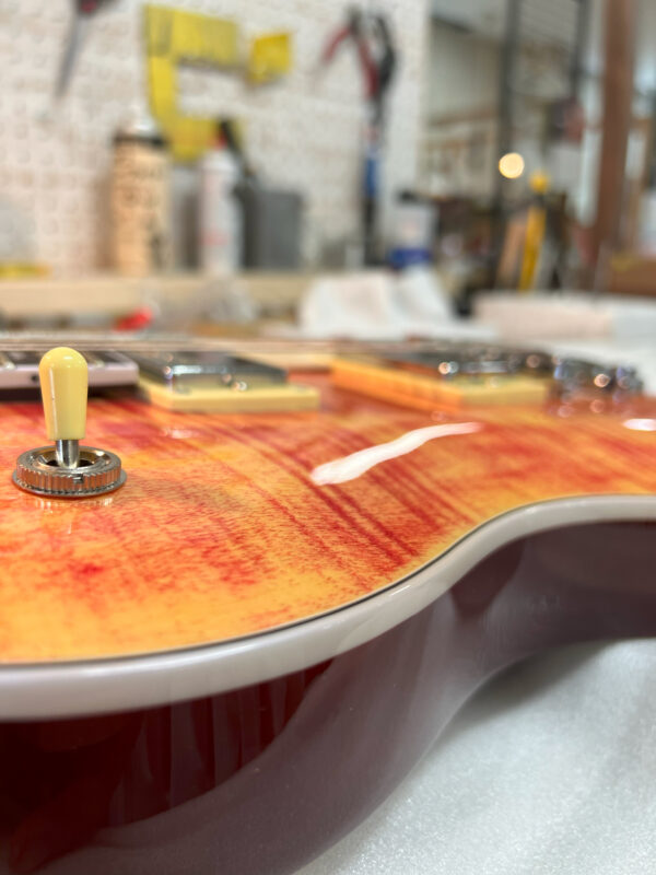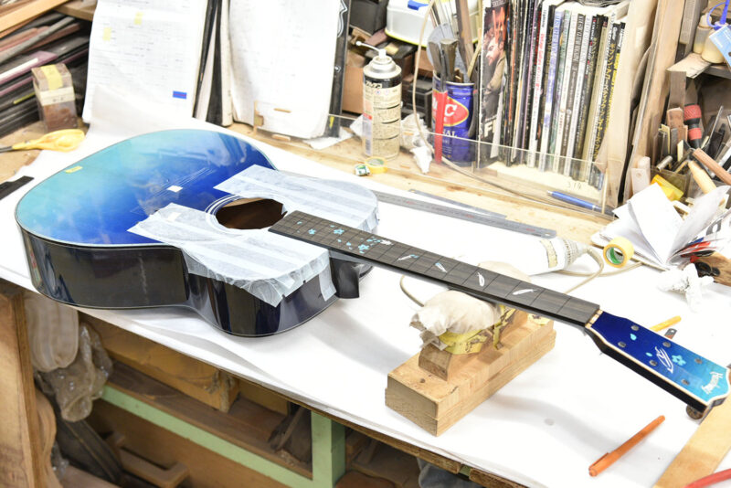 バックアイレジンにハカランダネックに1ピースのフレイムトチにと、これぞショーモデル!!というにふさわしいオーラを放っていたモデルの製作風景がこちら!!!