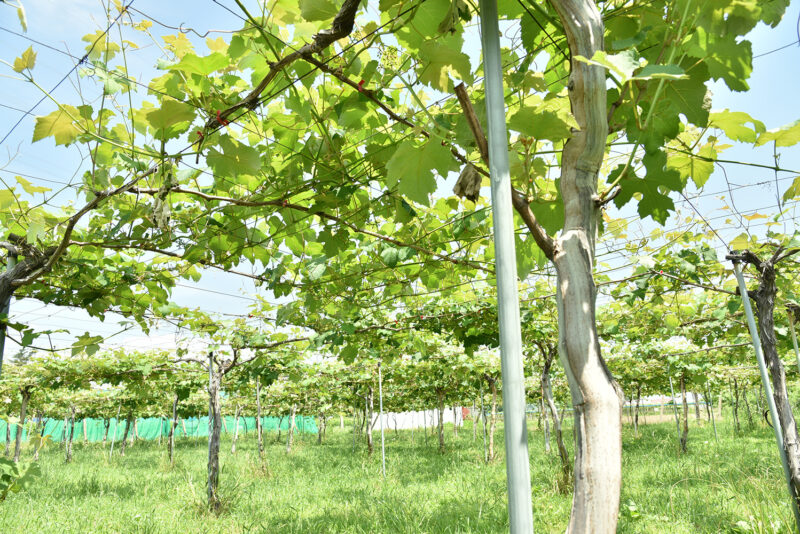 栽培方法にこだわった畑もあり、無農薬で草を刈らない「草生栽培」を行っている畑もあり、この方式では葡萄が雑草に栄養を奪われまいと育つ為、手間はかかるが美味しい葡萄が収穫できると言います。