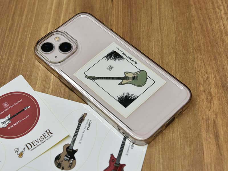 一目で赤松ギターと分かるインパクトを持たせつつ、使いやすいサイズ感とカラーでデザイン。機材や身の回りのものを赤松ギターで彩ってみてください!