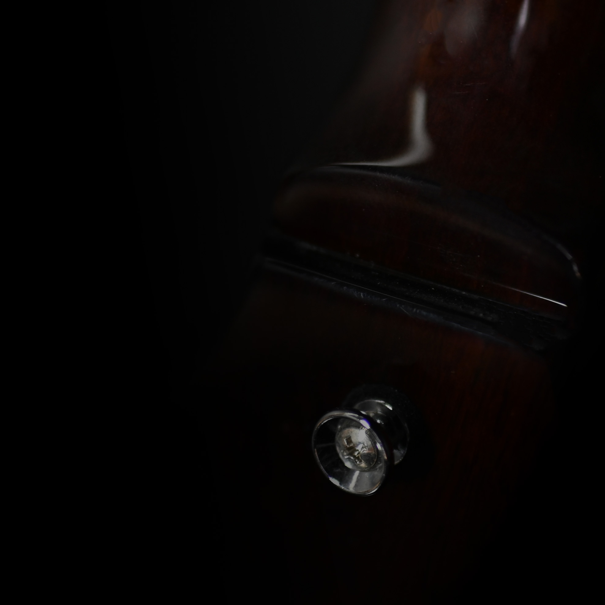 ネックとボディの接合部分はセットネック仕様であることが確認できます。ボルトオンの仕様と比較して、セットネックは製作に手間はかかりますが、弦の振動がネックにもダイレクトに伝えられることで得られるサスティーンや、振動伝達効率が高くボディ鳴りを活かせるといったメリットがあります。