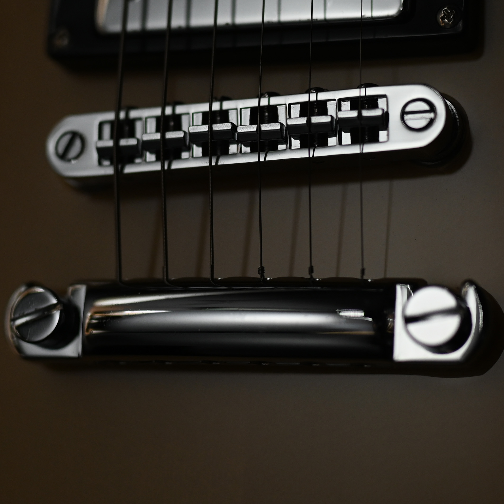 ブリッジには2モデル共通仕様のT.O.M(チューンオーマチック)タイプのブリッジを採用。トレモロユニットがないため弦の張力が安定しチューニングが狂いにくく、また弦振動がボディにダイレクトに伝わりやすくサスティーンが得られやすい機構です。