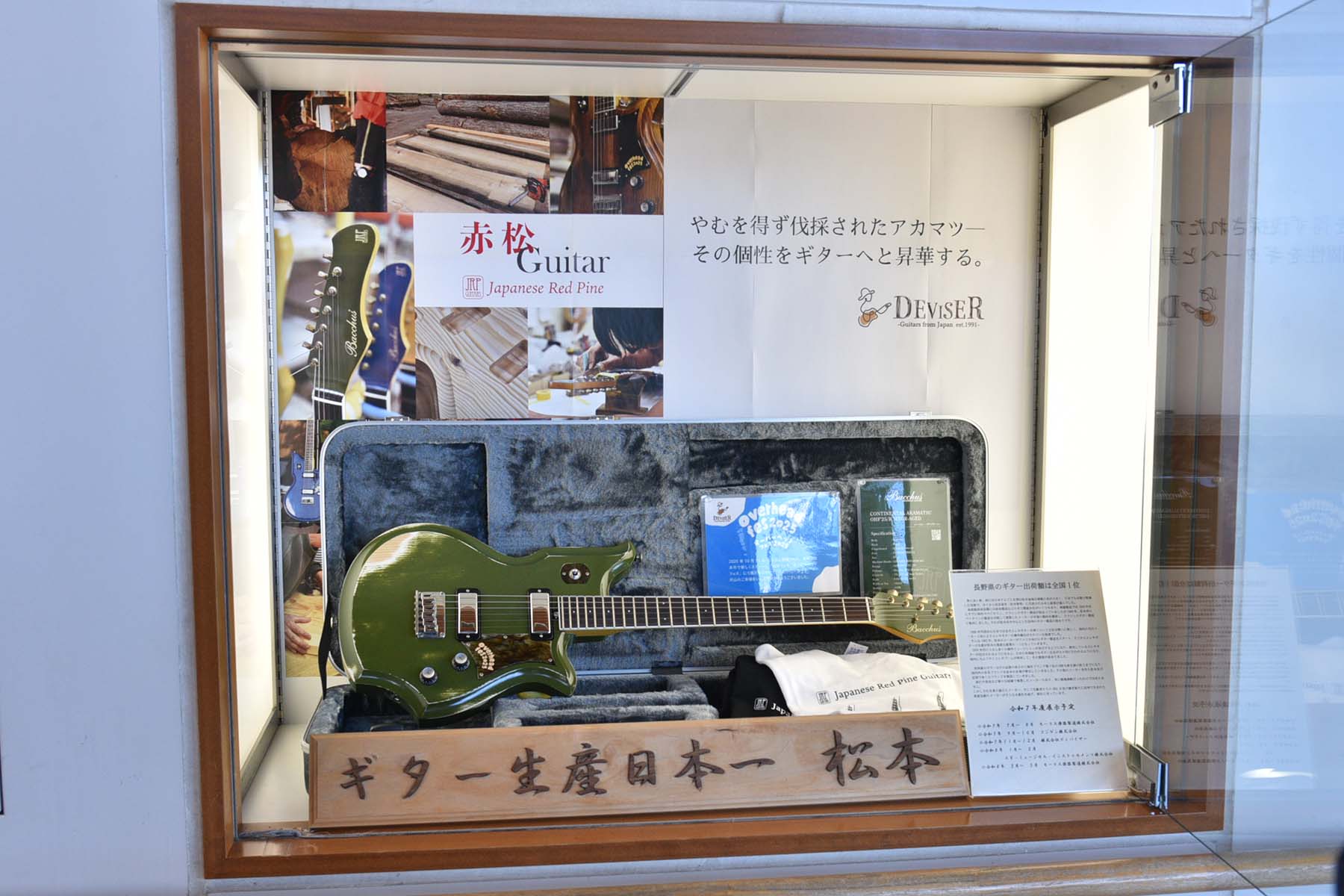 松本駅にオーバーヘッドフェス仕様の赤松ギターが展示中!