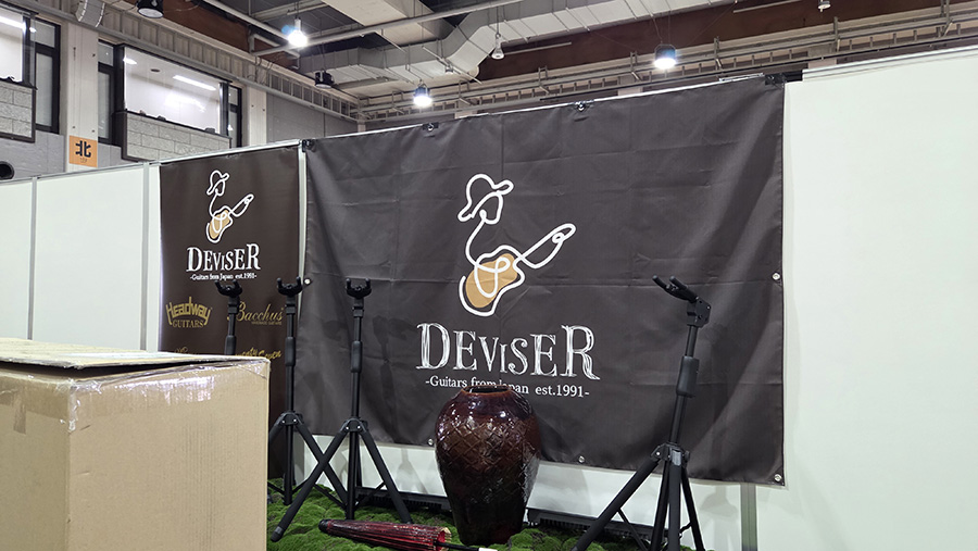 さらにBacchus・Headway・SeventySevenのJapan Tune-up Seriesも並びギターに囲まれるブースが完成です!!