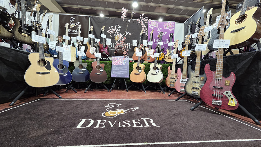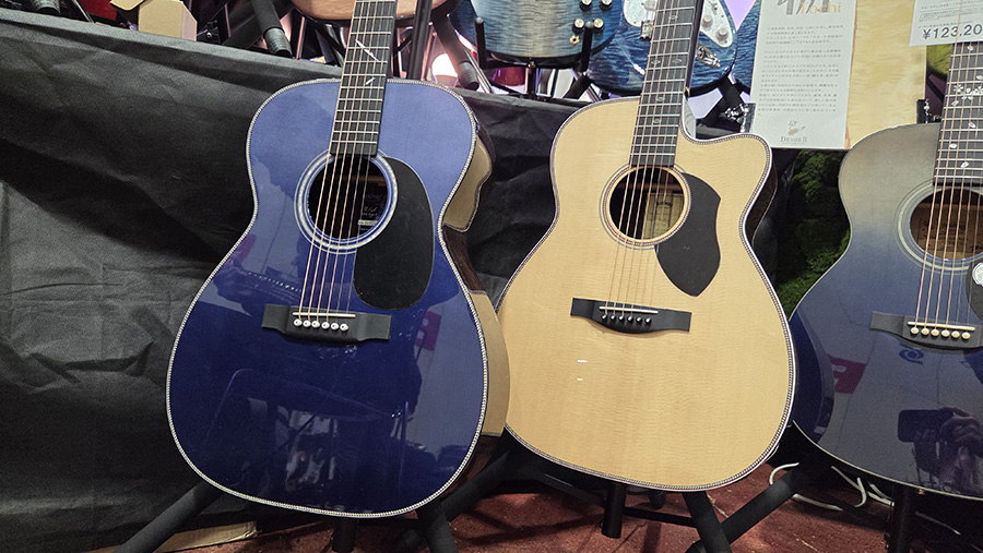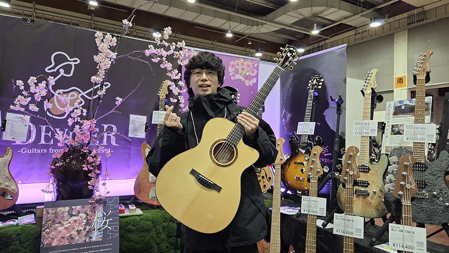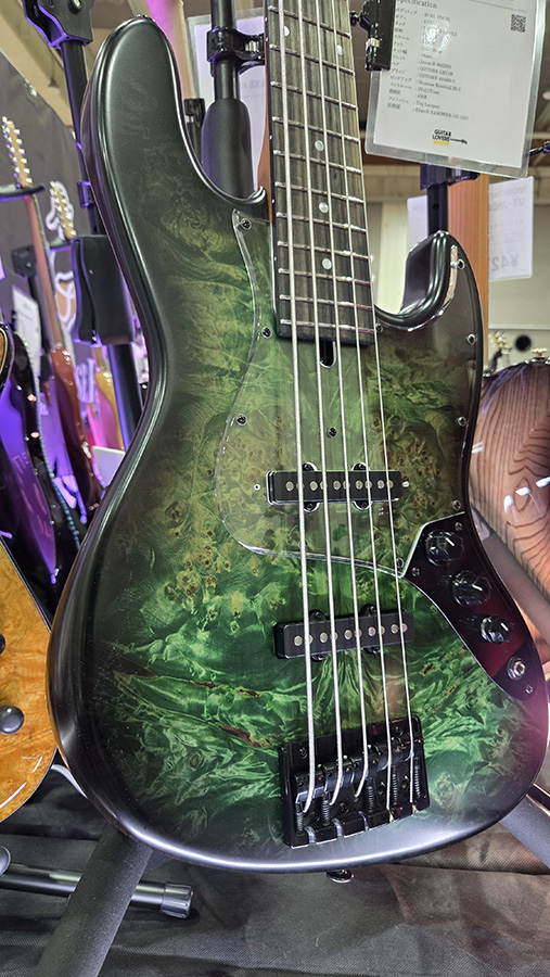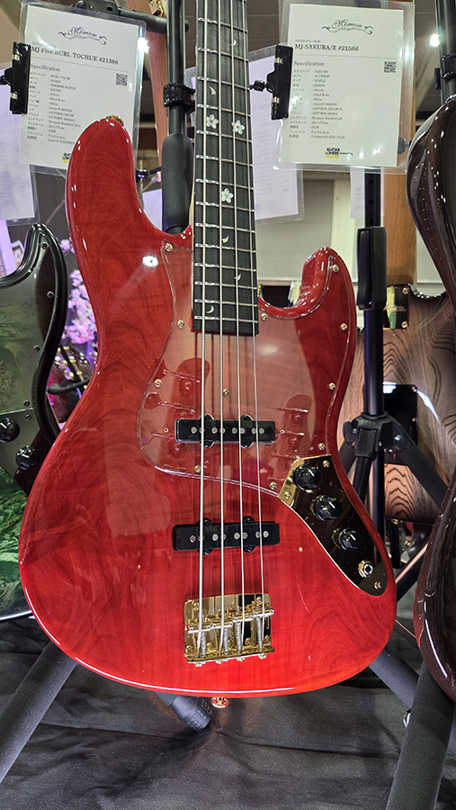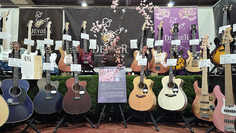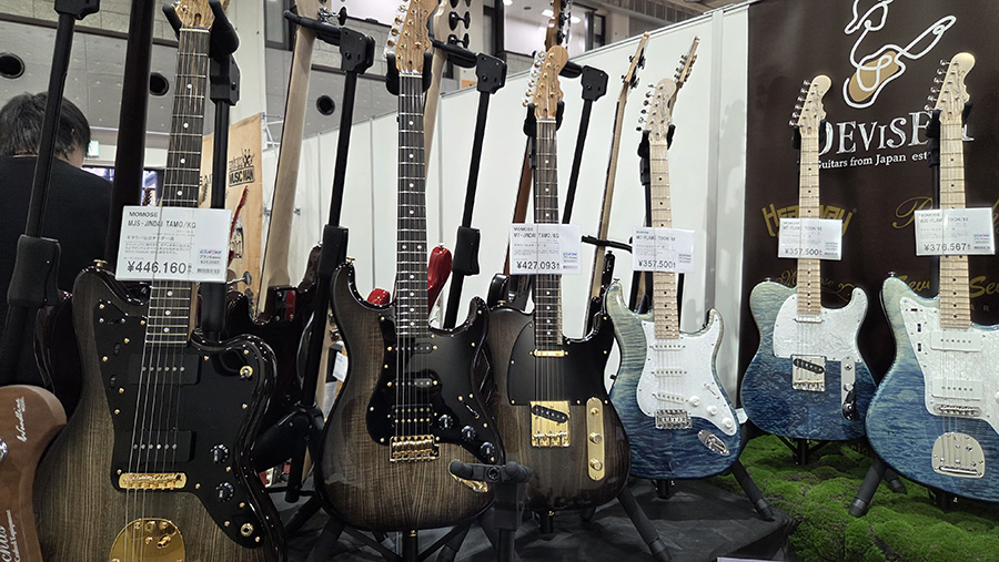 桜や栃と言ったディバイザーブランドを代表する和材はもちろん、希少性の高い神代タモやケヤキ、ハンノキ、クロガキ、カエデを組み合わせエレキギターはオール和材のモデルが並びました!!