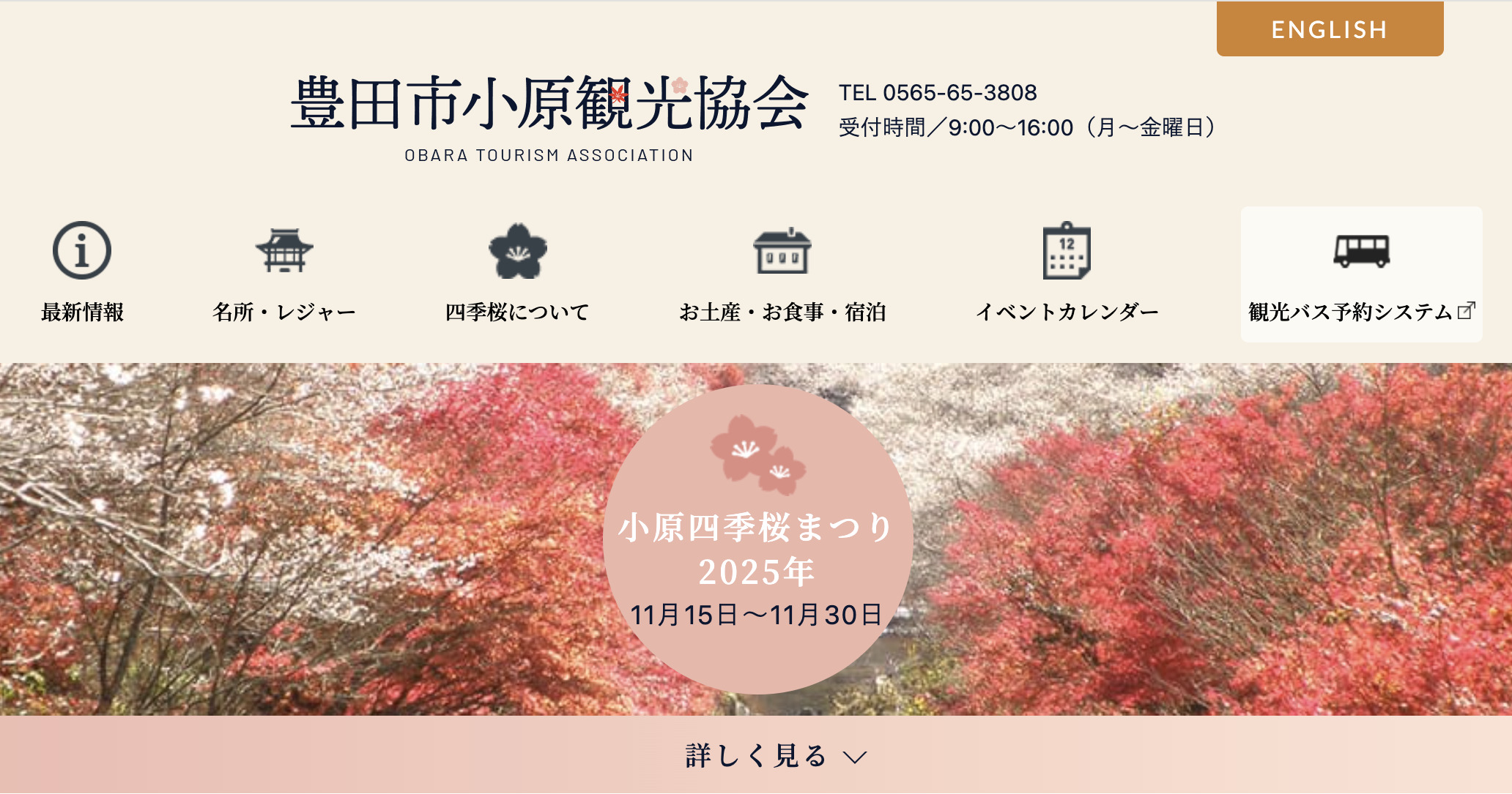 豊田市小原観光協会様のサイトでは、観光名所・レジャースポットやお食事処などをたくさん紹介してくださっていますので、ぜひそちらもご覧になってみてください!!