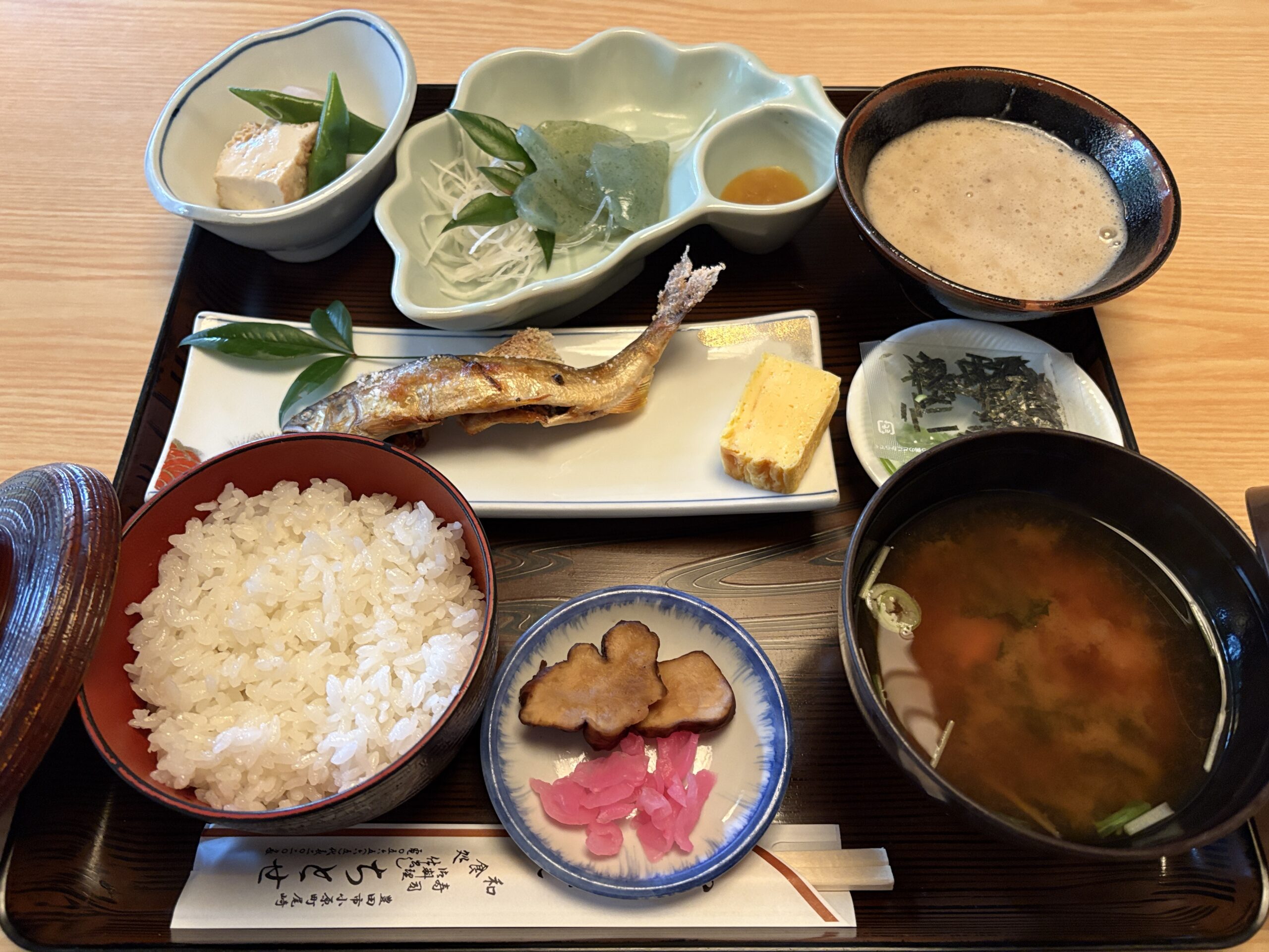 自然薯は風味バツグン、鮎は香ばしくて最高、こんにゃくの刺身も意外なおいしさ!地元の味をしっかり楽しめる大満足の定食でした!!