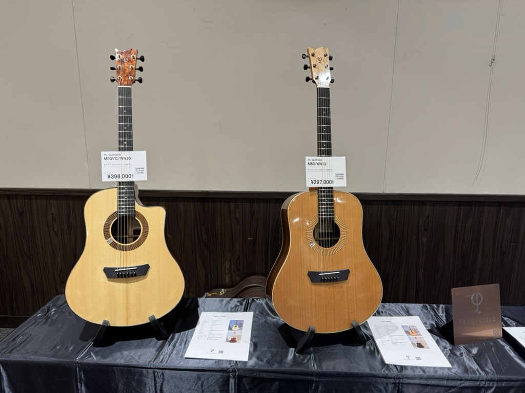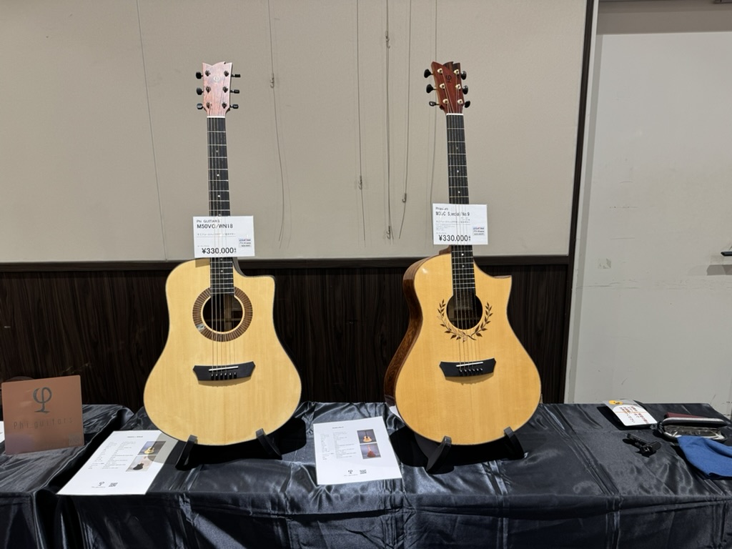 ボディエンドがやや大きめな形状が特徴的なこちらはPhine Guitarsさんです。手工ギターとしてはお求めやすく、多くのお客様が足を止めていました。