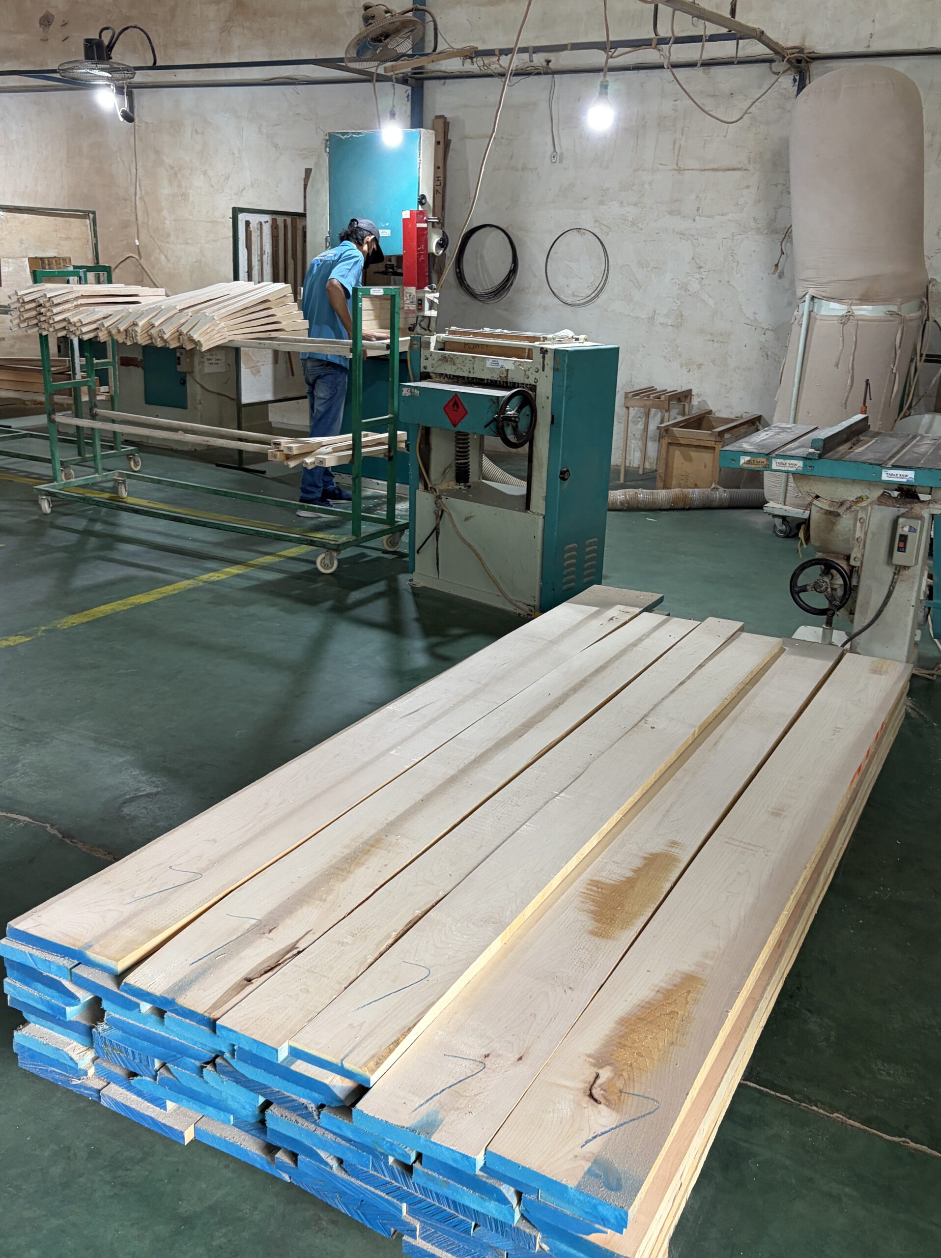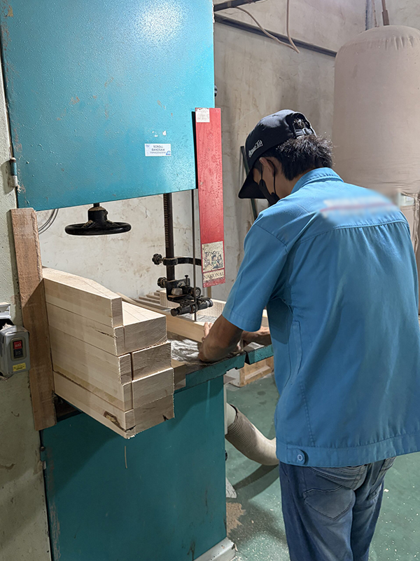 反りを最小限にするために木取りも考えながらワーカーが丁寧な作業をしていました(写真右)