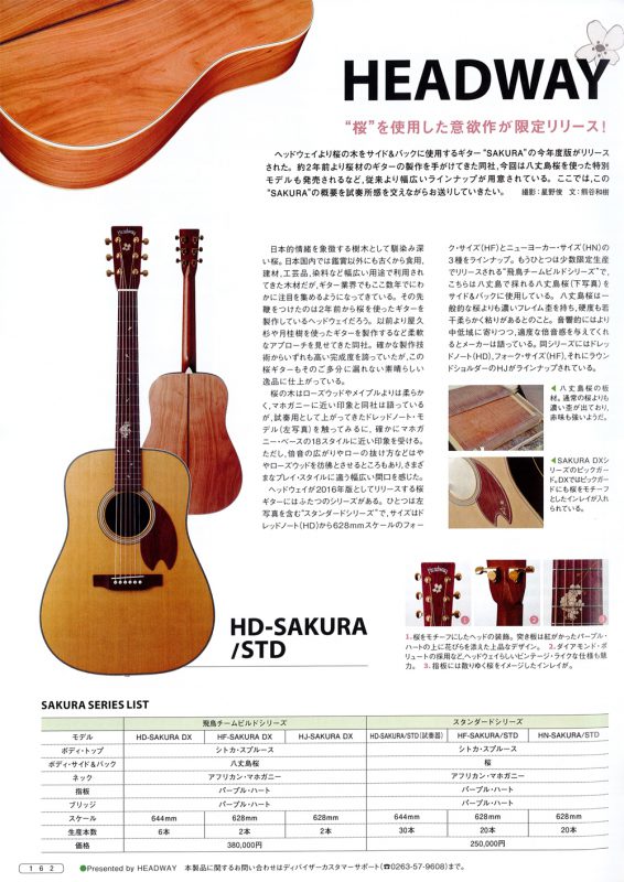 2016.04.27 アコースティックギターマガジン2016spring 桜材を使用したモデルの特集ページが掲載されました。 リットーミュージック刊アコースティックギターマガジンウェブサイト:https://www.rittor-music.co.jp/magazine/agm/ HEADWAY 桜の木を使った特別モデル 雑誌広告 地方紙・信濃毎日新聞 タウン情報