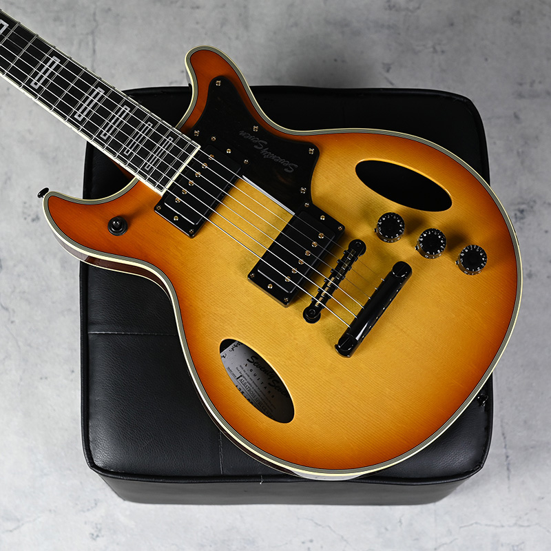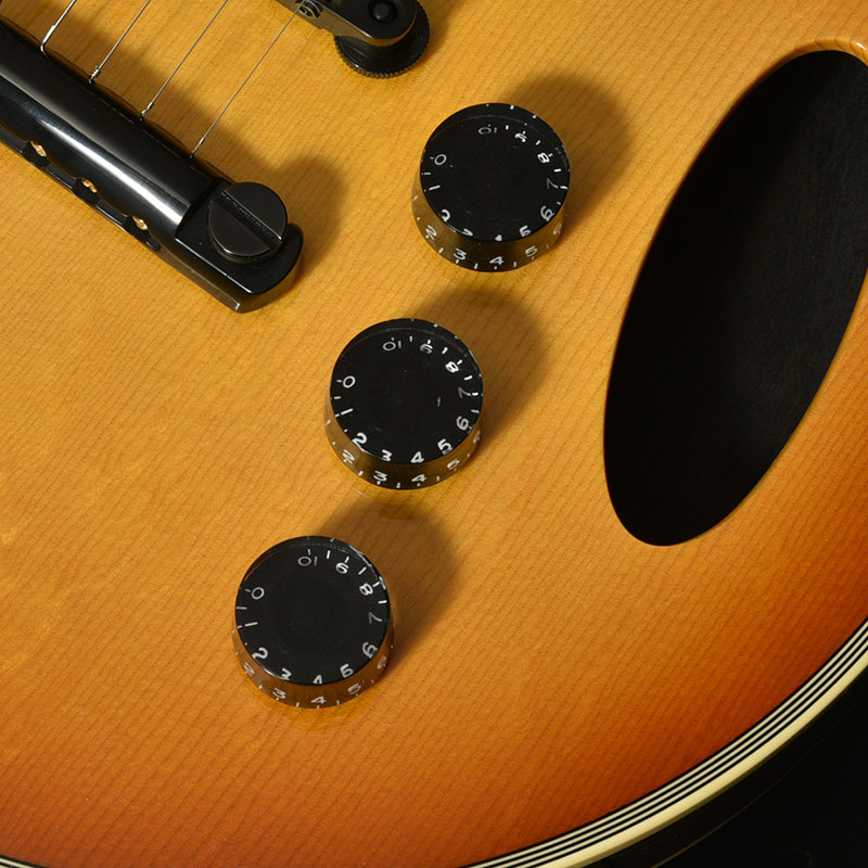 本機のカラーリングには温かみのあるIce Tea Burstを採用しました。より現代的デザインに仕上げるため、熟練の塗装技術による通常よりも細いバーストが用いられています。