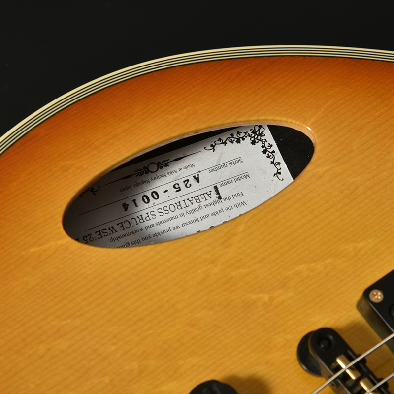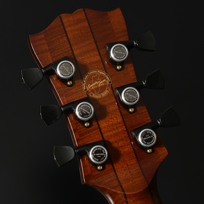 ボディトップにはアコースティックギターの材料として知られるスプルース材を使用。ホロウボディのALBATROSSにとって理想の音響特性を持った木材です。バック材としては、和材の中でも相性の良いトチを採用しています。中~高音域にかけて抜けの良いサウンドを持つ木材で、アコースティックなトーンの中にもエレキギター然とした芯のあるサウンドを確立しています。
