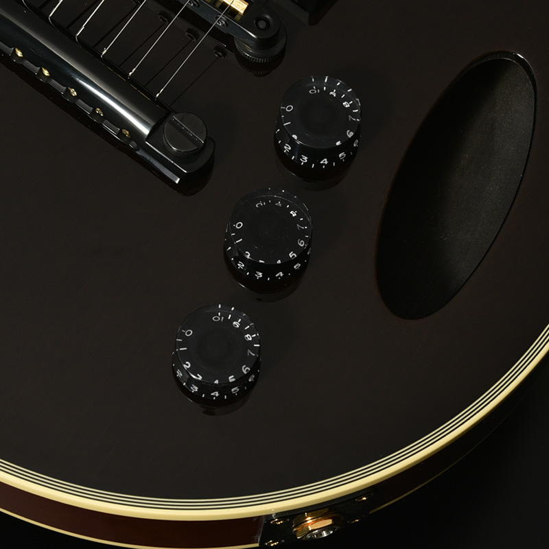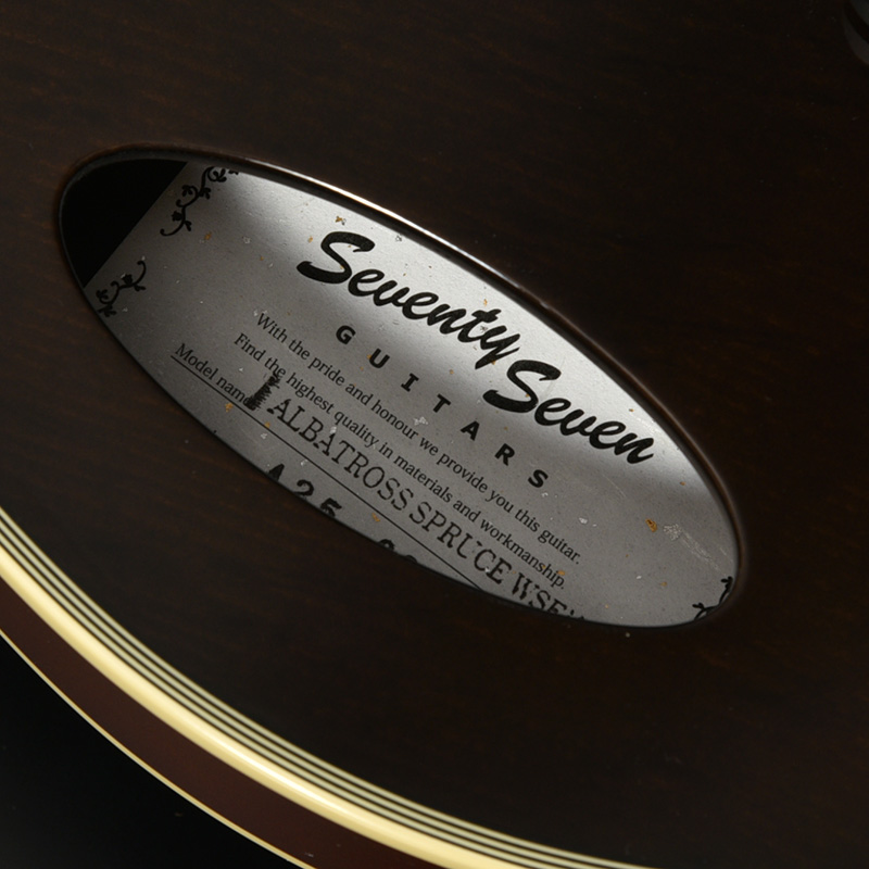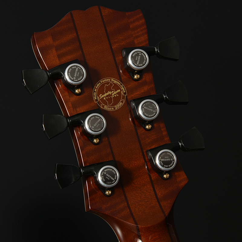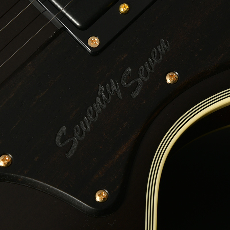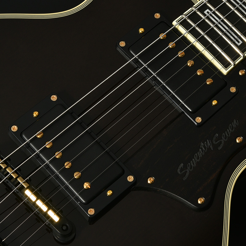 ピックアップにはMojotone×SeventySeven共同開発の “Classic 77Humbuker″ を標準搭載。セミホロウ構造とのマッチングを考え、磁力の弱いアルニコ2マグネットの採用、通常よりコイルのターン数を抑えた仕様となっています。クリーン、ドライブのどちらでもクリアな音が保たれ、引き締まったボトムエンドと豊かなサスティーンが特徴です。