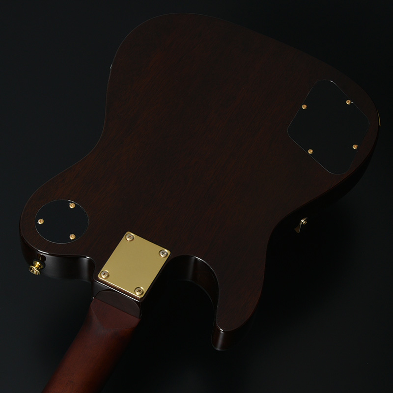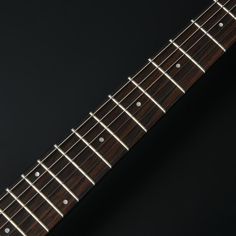適度な重量を備えたナトーボディより、立ち上がって演奏する際にもバランス感の良さを発揮します。ボディ外周に施されたヘリンボーンスタイルのバインディングと落ち着いた雰囲気のカラーリングが特徴です。