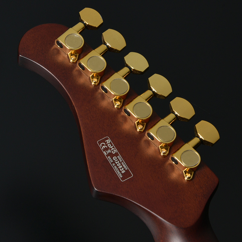 一般的なシングルカット・モデルよりもフレット間隔の少し狭い、所謂ミディアムスケール628mm(24.75inch)を採用。ボルトオンタイプのネック構造とも相まり、ハイフレットでもスムーズな演奏をお楽しみいただけます。