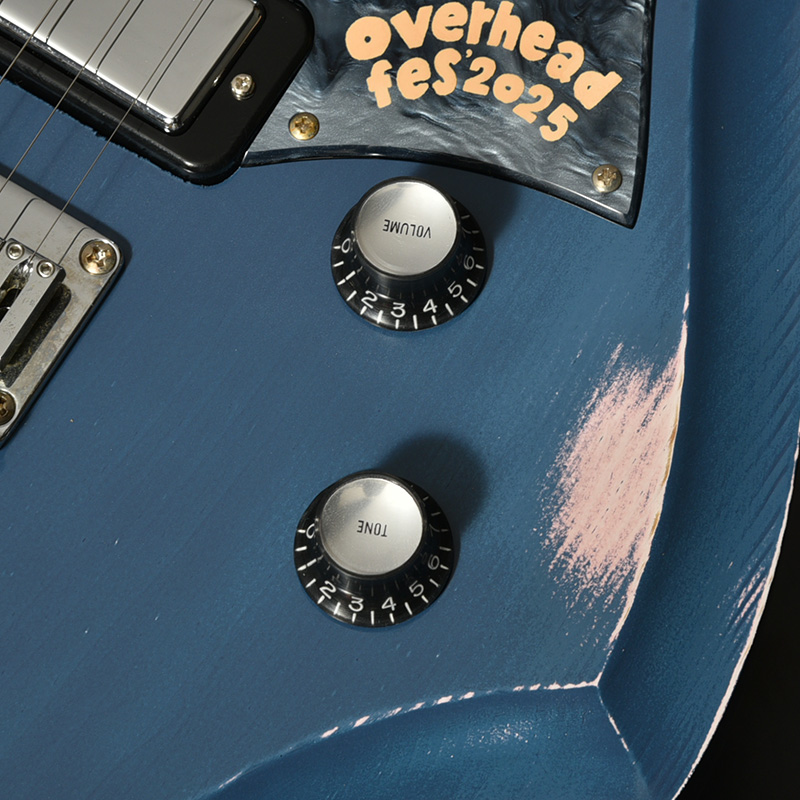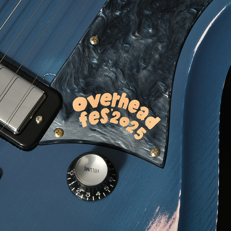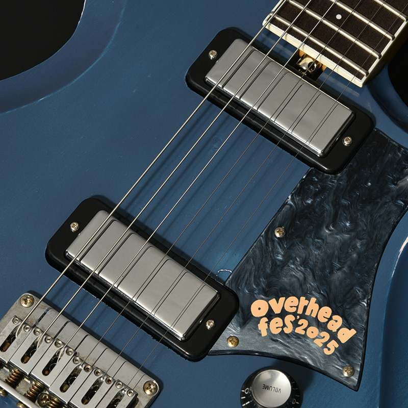 限定仕様の本機では、ピックガードにオーバーヘッドフェスのロゴをワンポイントでデザイン。ボディカラーは本イベントのポスターにも使用されている、信州の青く澄み渡る空をイメージしたIndigo Blueで仕上げられています。