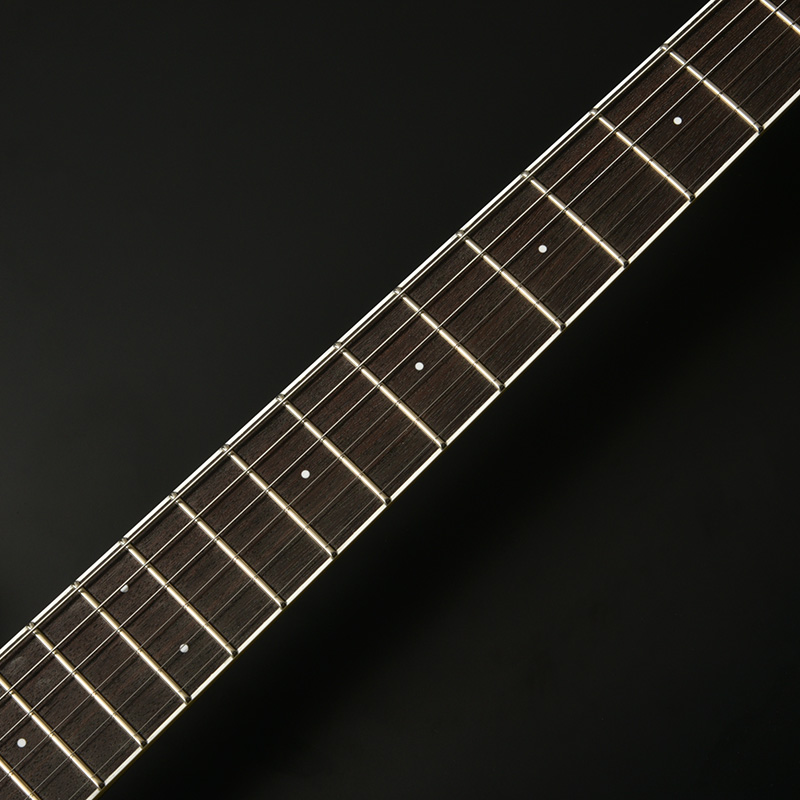 ネックには指板材として定番のインディアンローズウッドを使用。指板サイドのバインディングと通常より小さなドットポジションマークを採用し、洗練された印象のデザインです。
