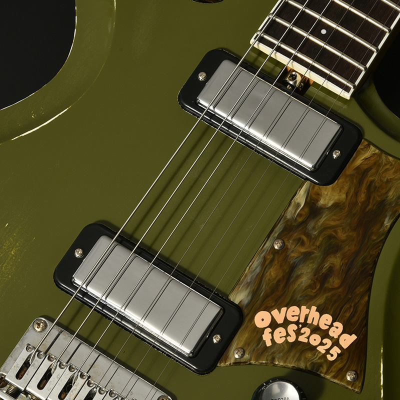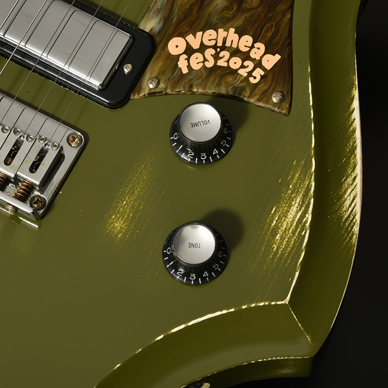 限定仕様の本機では、ピックガードにオーバーヘッドフェスのロゴをワンポイントでデザイン。ボディカラーは本イベントのポスターにも使用されている、信州の山々をイメージしたMountain Greenで仕上げられています。