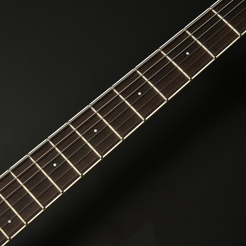 ネックには指板材として定番のインディアンローズウッドを使用。指板サイドのバインディングと通常より小さなドットポジションマークを採用し、洗練された印象のデザインです。