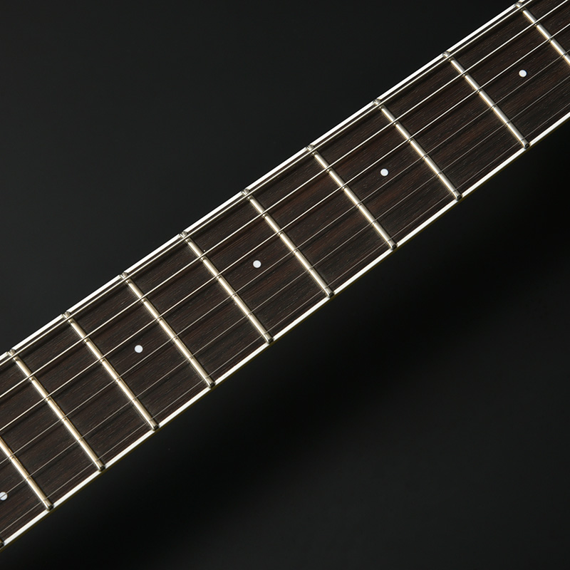 ネックには指板材として定番のインディアンローズウッドを使用。指板サイドのバインディングと通常より小さなドットポジションマークを採用し、洗練された印象のデザインです。