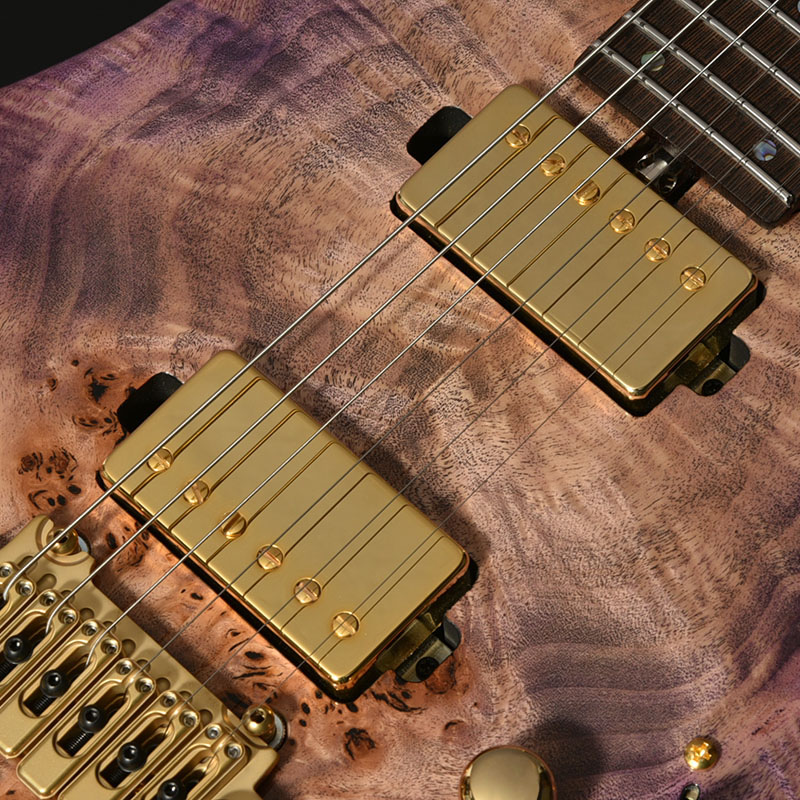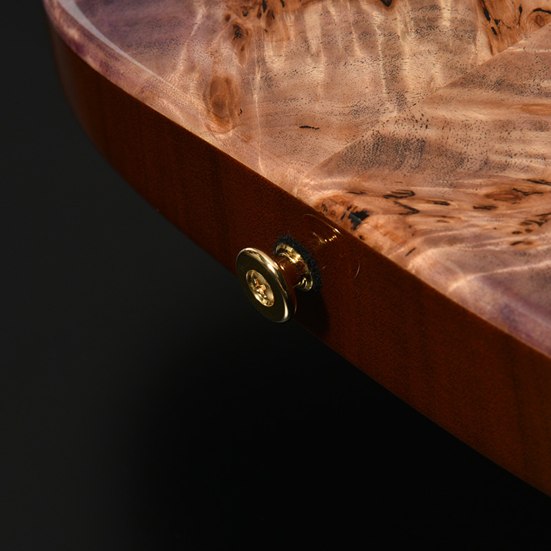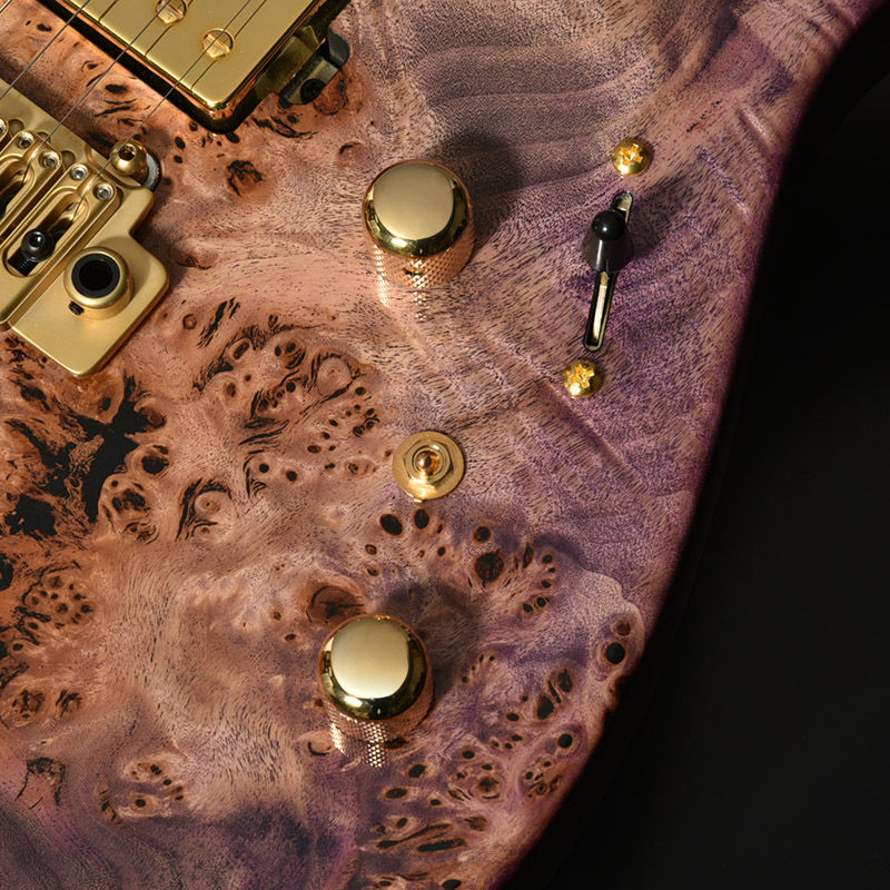 メイプル材などと比べて強度が高く、非常に硬質な特性を持つ「ウェンジ」。その美しい見た目から、ヨーロッパでは古くから高級家具材としても使用されてきました。 ウェンジは時間をかけて乾燥させることで、ネック材としても優秀な素材です。その音に硬さはなく、クリアなトーンと存在感のある中低音域を響かせます。