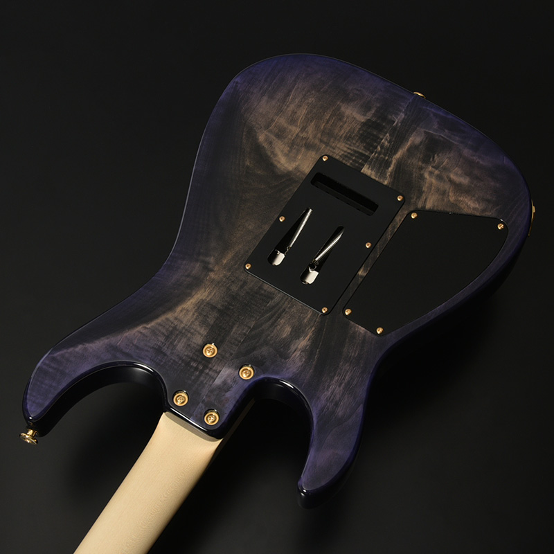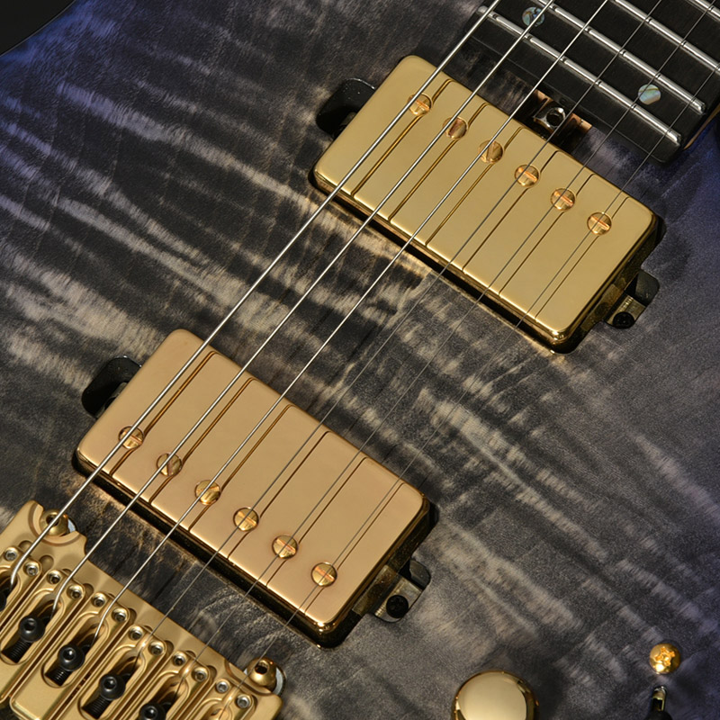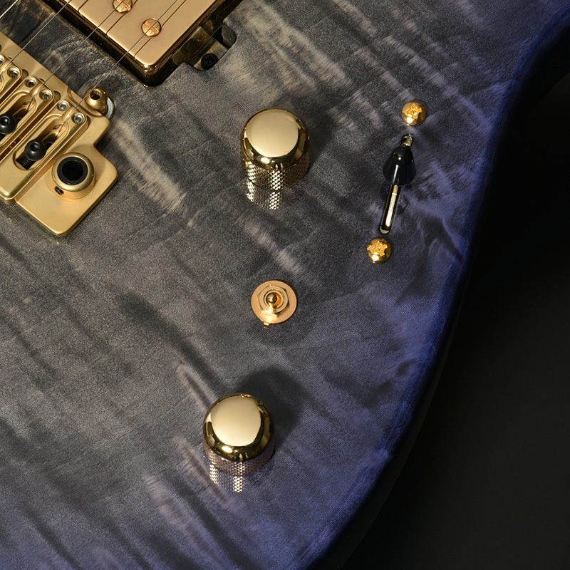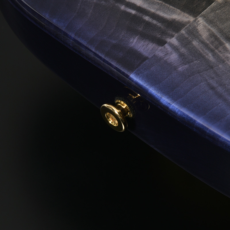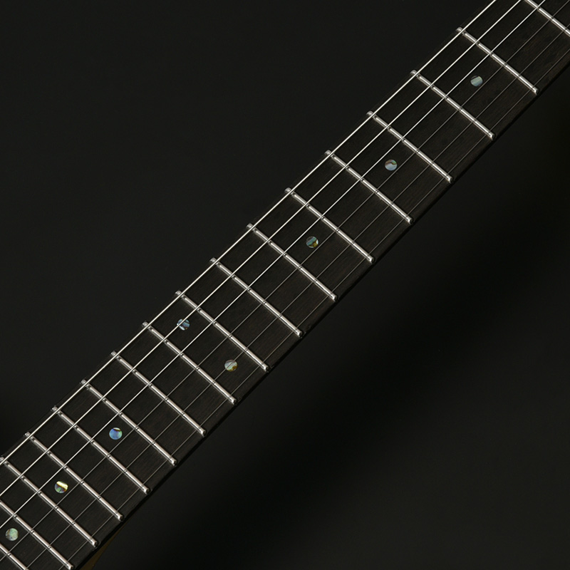 指板には黒々とした高級感のあるルックスでおなじみのエボニー材を採用。定番のローズウッドなどに比べて重量があり、立ち上がりが早く輪郭のあるトーンと伸びやかなサスティーンを生み出します。本モデルではネックのメイプル材を反りやねじれに強い「柾目(まさめ)」で製材することで、安定感抜群の演奏性と末長く愛用いただける仕様を実現しています。