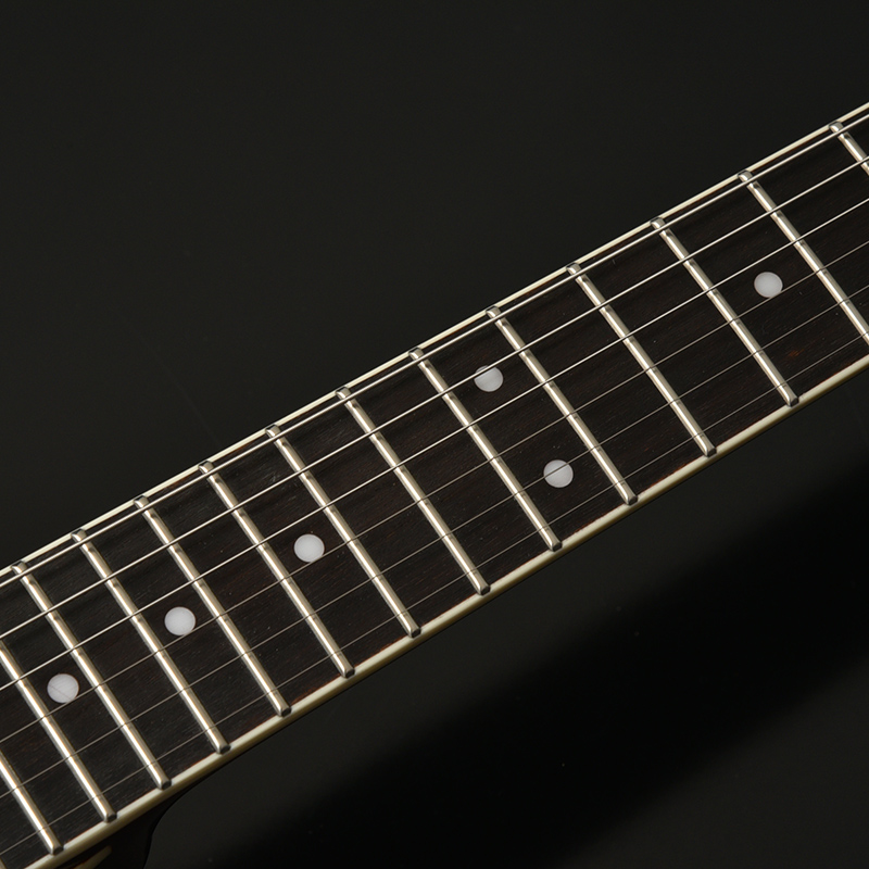 番手の違うサンドペーパーやスチールウールなどを使い分け、各フレットのエッジ部分に丁寧に丸みを付けることにより、左手の移動が滑らかになりました。ハイフレットまで滑るように移動が可能です。