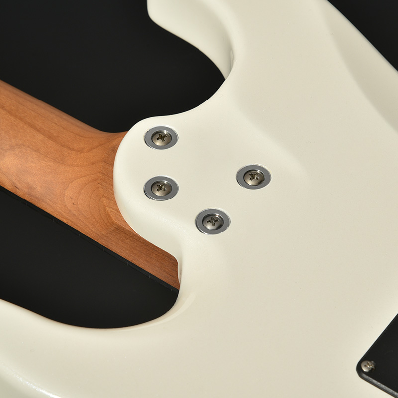 エントリークラスのモデルには珍しいヒールレスカットを採用することで、ハイフレットの演奏時もスムーズなフィンガリングを可能に。ブッシュボルト部分に施されたコンター加工がプレイアビリティを高めます。