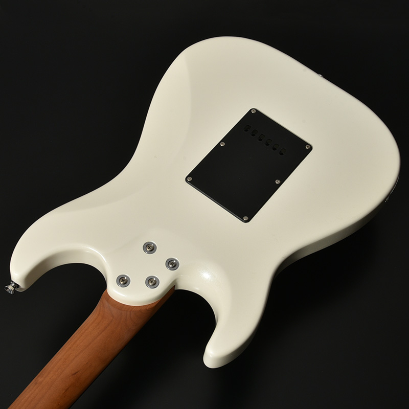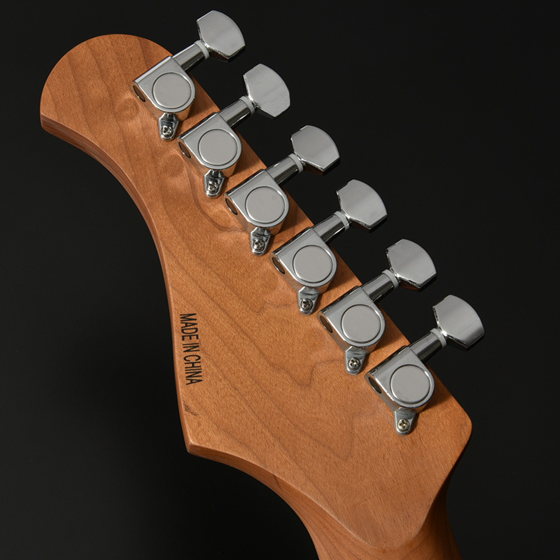 ローステッドメイプルとはメイプルを高温で加熱処理して材の中の水分や油分を揮発させることにより木材を経年変化した状態に人工的に近づけた材のことです。経年変化が進んだ材は歪みやねじれが生じにくくなります。ネックに使用されるとその効果は安定性だけでなくサウンドにも及び、豊かな生鳴りと経年変化したビンテージのようなこなれたトーンを生み出します。一般的に高級機種などで用いられる材ですが、手に取りやすい価格帯に落とし込むことに成功しました。