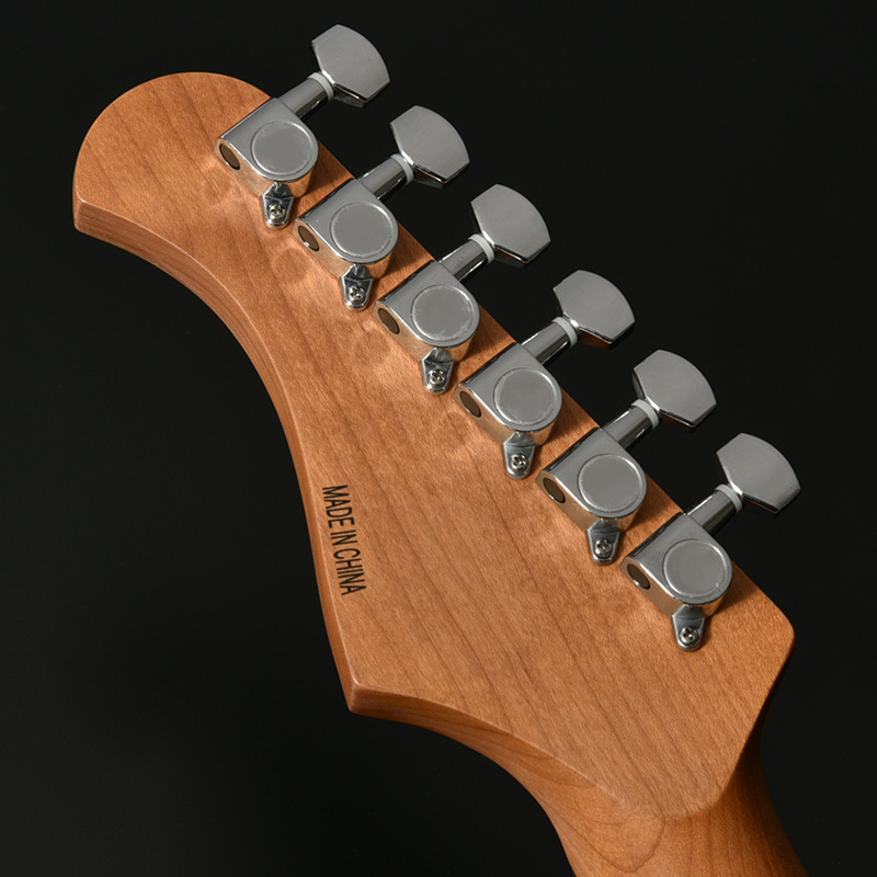 ローステッドメイプルとはメイプルを高温で加熱処理して材の中の水分や油分を揮発させることにより木材を経年変化した状態に人工的に近づけた材のことです。経年変化が進んだ材は歪みやねじれが生じにくくなります。ネックに使用されるとその効果は安定性だけでなくサウンドにも及び、豊かな生鳴りと経年変化したビンテージのようなこなれたトーンを生み出します。一般的に高級機種などで用いられる材ですが、手に取りやすい価格帯に落とし込むことに成功しました。