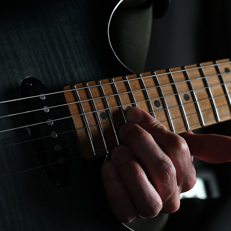 加熱処理を施すことにより材の中の水分や油分を揮発させ、木材を経年変化した状態に近づけたローステッドメイプルをネックと指板に採用。経年変化が進んだ材は歪みやねじれが生じにくくなります。ネックに使用されるとその効果は安定性だけでなくサウンドにも及び、豊かな生鳴りと経年変化したビンテージのようなこなれたトーンを生み出します。