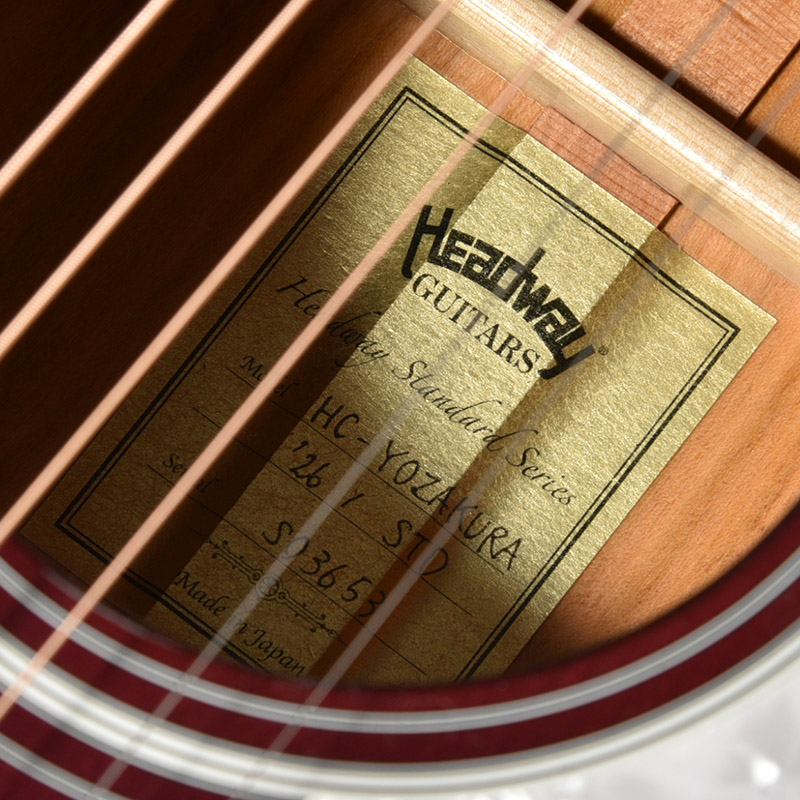Headwayマスタービルダーの百瀬恭夫が1934年製のビンテージギターのブレーシングを研究し、独自に発展させたブレーシングを継承。Xのクロス位置がサウンドホールに近いセミフォワードシフトで新品時より低音の反応がよく、ボリュームのある鳴りを持ちます。フォワードシフトよりも5mmほどブリッジ寄りになっていることにより、トップ板の安定性も考慮された設計が行われています。