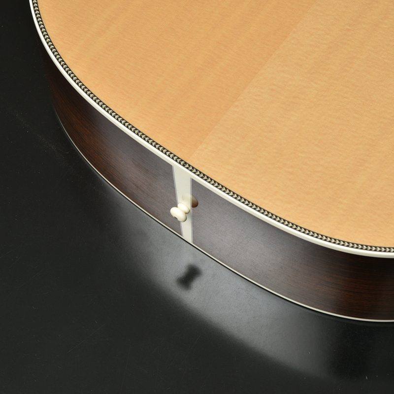 1音1音しっかりと鳴り響き、芯のある迫力のサウンドを実現。また、位置をブリッジ側へ寄せることでトップ材に対しての丈夫さも増し、永くご使用頂ける安心のモデルに仕上がりました。