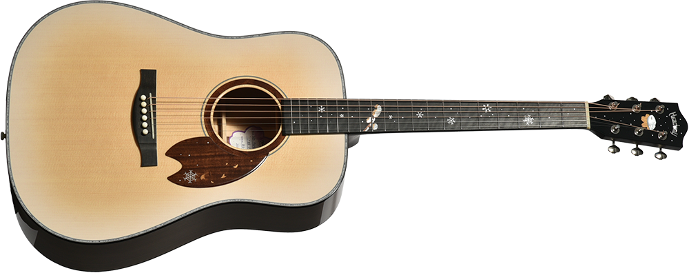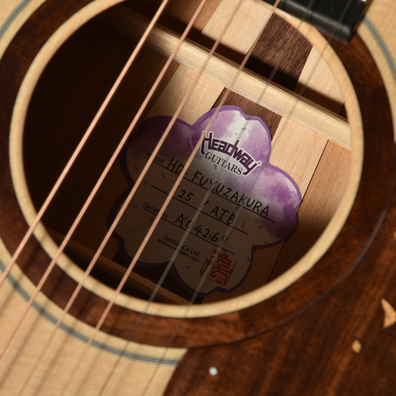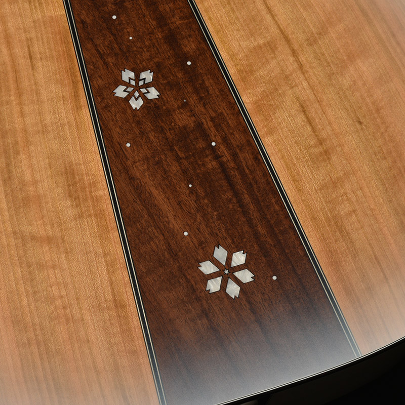 ヘッドと指板には、桜材と“舞い降る雪”を組み合わせたデザインを採用しています。