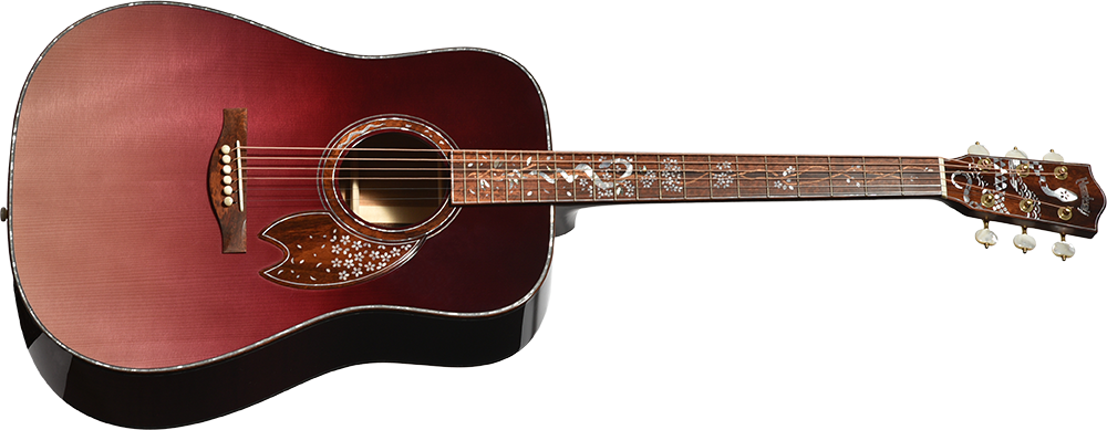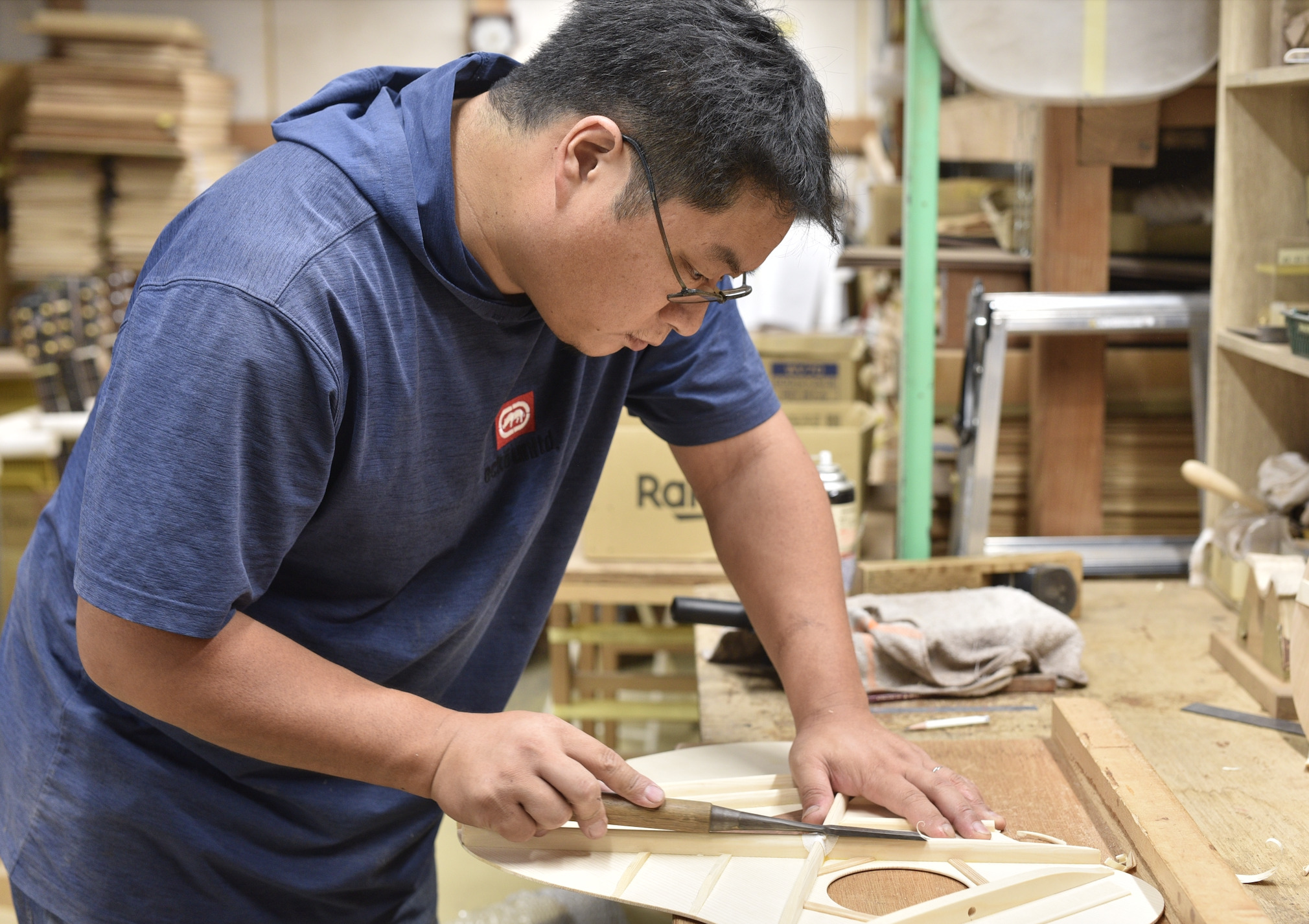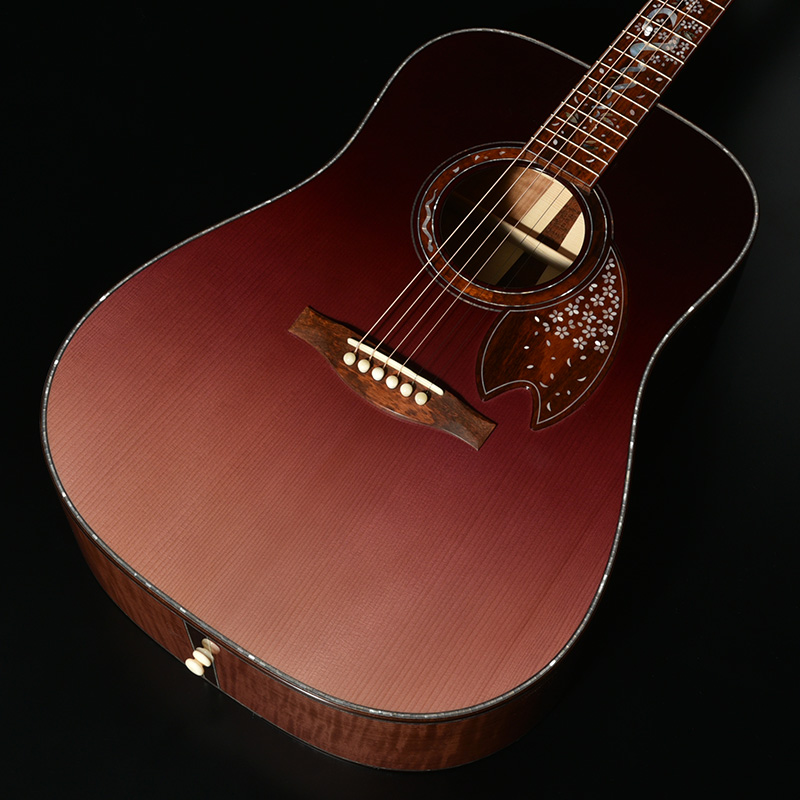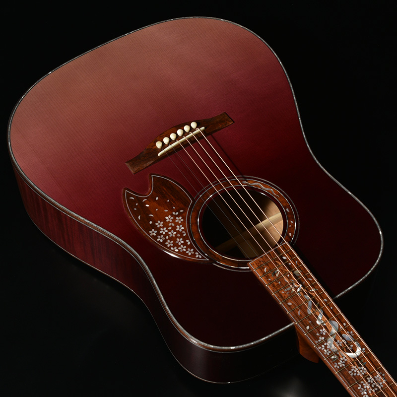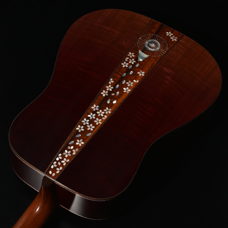 限定モデルの代名詞ともなったサウンドホールカバーにも、軽井沢彫りによる「蛇」と「桜」を彫刻。同じく軽井沢で木彫工芸品の技を継承する「クラサワ工房」の手による彩色が行われており、伝統技術ならではの深みのある色合いと質感が魅力となっています。